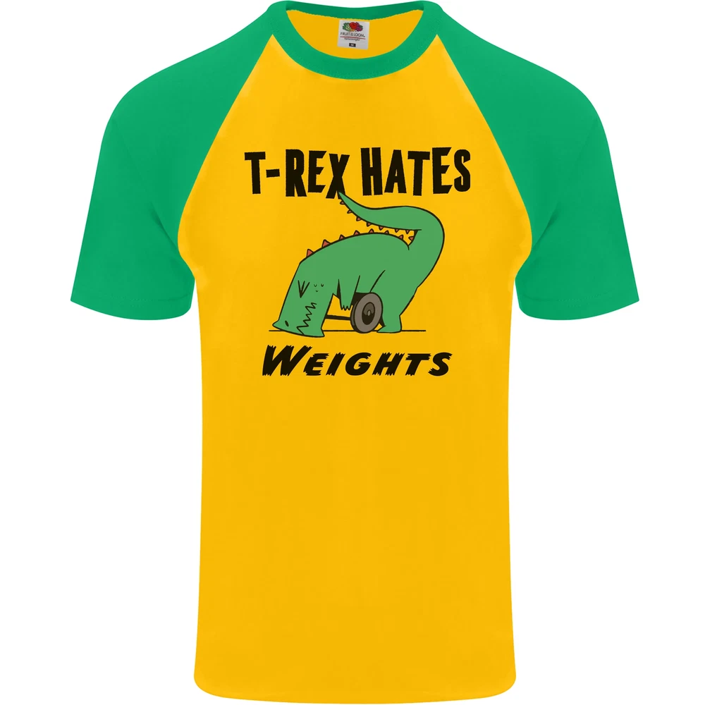 T-Rex Hates Weights Funny Gym Workout Mens S/S Baseball T-Shirt