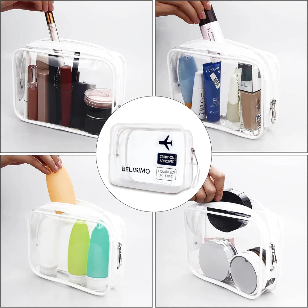 Store New Arrivals Add to Favorite View Feedback Contact TSA Approved Clear Travel Toiletry Bag with Zippers Carry-On Travel Accessories Description Item model number TT-01 Product Dimensions 9.8 x 5.9 x 0.74 inches Country of Origin USA Item Weight 2.08 ounces Department Unisex Adult Manufacturer BELISIMO 🔥TSA APPROVED --- Made of clear PVC fabric, the BELISIMO toiletry bag strictly adheres to TSA 3-1-1 liquids rules for carry-on bags on all airlines. This makeup bag measures 7.8 x 5.3 x 2.3 inches, which is large enough to hold 100ml liquid bottles. It helps individuals spot items without rummaging through the bag. You cannot imagine how quickly and easily this clear shower bag can help you pass through security screening or find the items you need! 🔥Improved Zipper and Handle Strape: Sturdy metal zippers work smoothly and can be closed firmly. Zipper bag is more durable than those inferior zip-top bags. With all research on toiletry bags, we add handle strape to make it more convenience during any traveling, flights, hotel stay, and weekend vacation. 🔥PORTABLE & LIGHTWEIGHT --- Perfect for holding travel bottles, cosmetics, shaving kits, and great for storing makeup brushes, towels, toys, etc. This clear toiletry bag weighs ONLY 0.13lb, lighter than an eyelash brush. A fantastic travel companion that can hold as many toiletries as you need without weighing too much itself. Bag is Easy to Clean After Use and Wash. 🔥HIGH-QUALITY FABRIC & REINFORCED SEAMS --- This Toiletry Bag is Transparent, Waterproof Travel Pack to Hold all Your Liquids. Environmentally Friendly. PVC is Premiere Strength and Built To Last with you for the Long-term. Reinforced seams ensure that it never tears, keeping your travel make-ups or toiletries well-organized. No need to worry about the travel toiletry bag splitting easily and cosmetics spreading everywhere anymore! 🔥AMAZING GIFT IDEA! – Stylish Design. No More Sandwich or Ziplock Bags! Great for Men and Women. One Size Fits All Genders and Meets all Requirements and Guidelines. Press "ADD TO CART" now and when you do, consider getting two... one for you and one as a gift for a friend! It's the perfect holiday, birthday, graduation or 'new job' Gift for the dapper lads and ladies in your life! Travel toiletry bag will become your most valuable and reliable travel buddy! Please wash the outside and inside of this toiletry bag with soap and water, and wipe it with a damp cloth. Then leave it in a well-ventilated place for a few days with the bag open before use. ABOUT US We offer the best prices around on high quality products. Our E-store includes media such as books, movies, music and games while offering electronics, toys, sporting apparel, clothing, tools, general home, garden items and more. SHIPPING We are always working hard to ensure your package arrives as soon as possible. Please understand that some factors like weather, high postal traffic, and the performance of shipping companies are outside of our control. We offer free shipping to the lower 48 states and ship within 2 business days of payment, usually sooner. We do not accept P.O. Boxes. Please provide a physical address. RETURNS We offer a 30-Day Return Policy on items which you are not completely satisfied with. You have the option for a full-refund or an exchange of the item. No returns are available on items shipped outside of the USA. PAYMENT We accept PayPal. CONTACT US This page content is yet to come Please ad us to your favorite seller and visit again later Thank You CUSTOMER SATISFACTION We try our very best to make sure every customer is completely satisfied. If there's a problem, message us! We're happy to help.