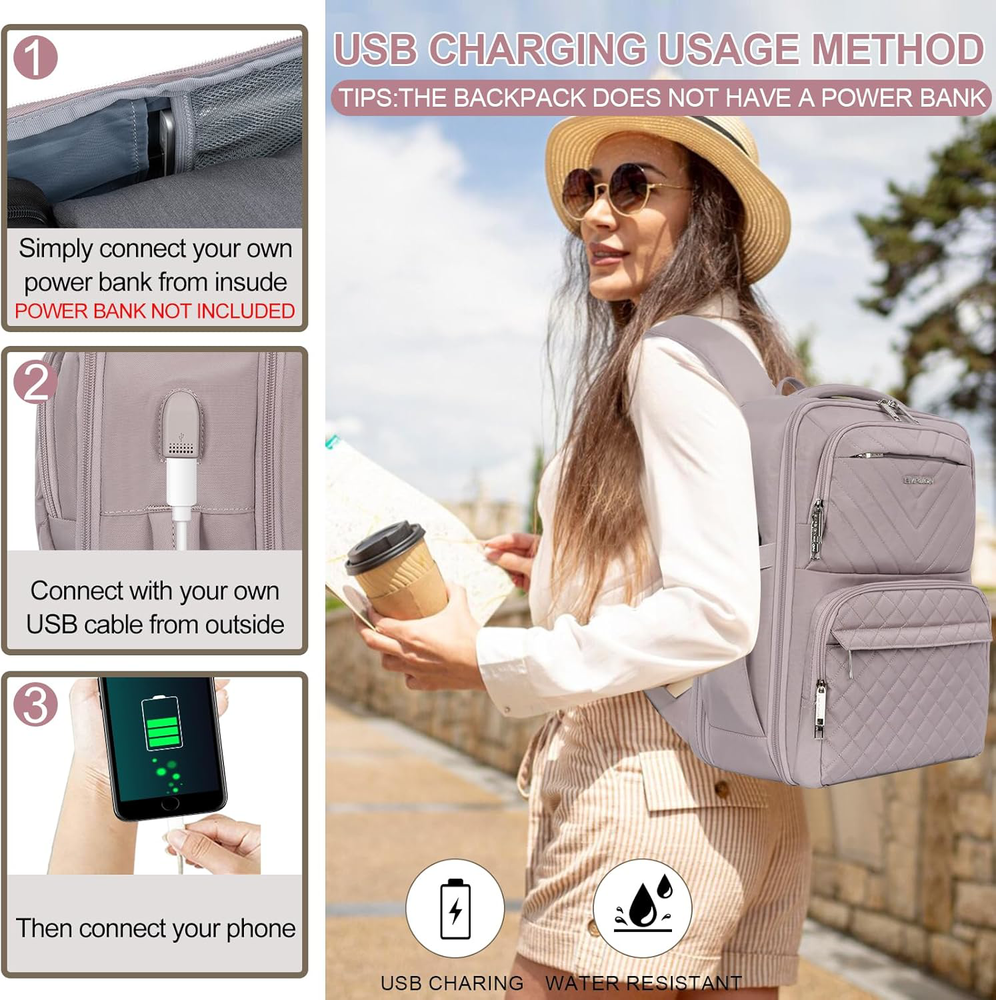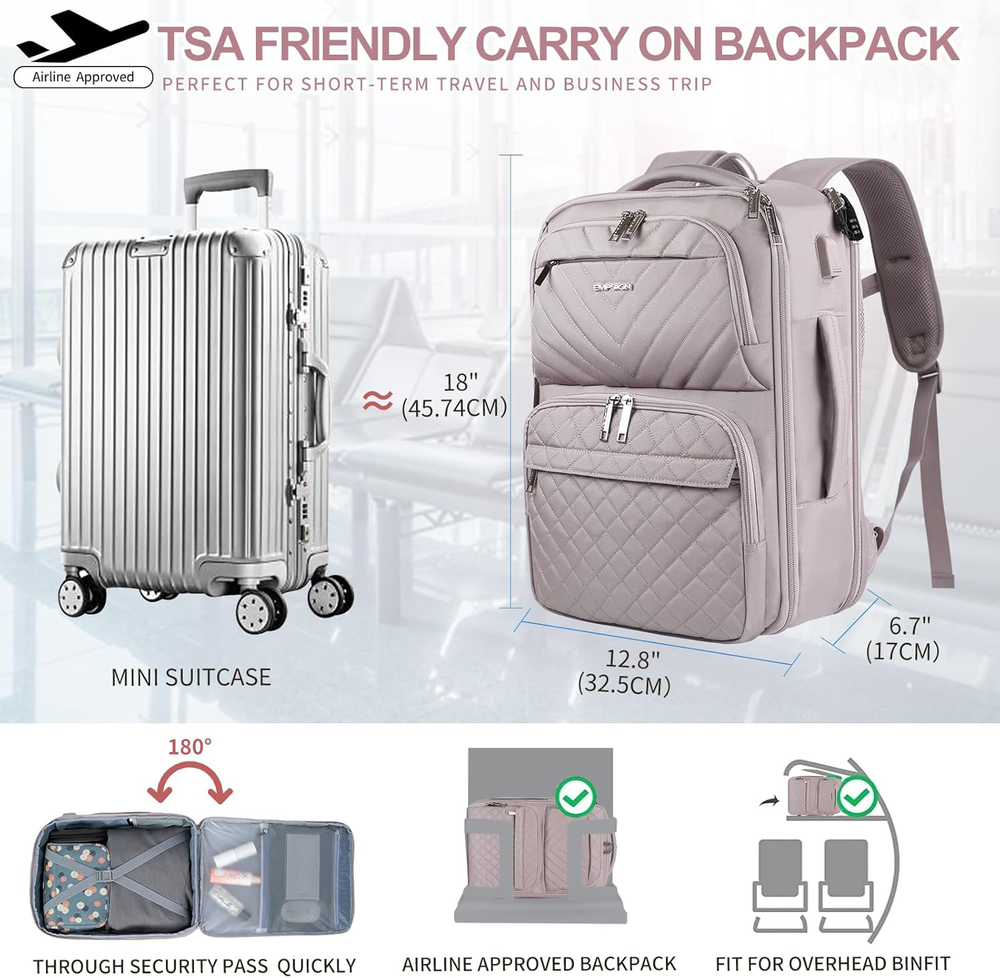 1. This backpack is a game-changer for travel! The 17-inch size is perfect, fits under seats, and the USB port is so handy. Love the stylish grey and pink design—it’s sturdy yet lightweight. Shipping was super fast, and customer support was excellent. Highly recommend for hassle-free trips!