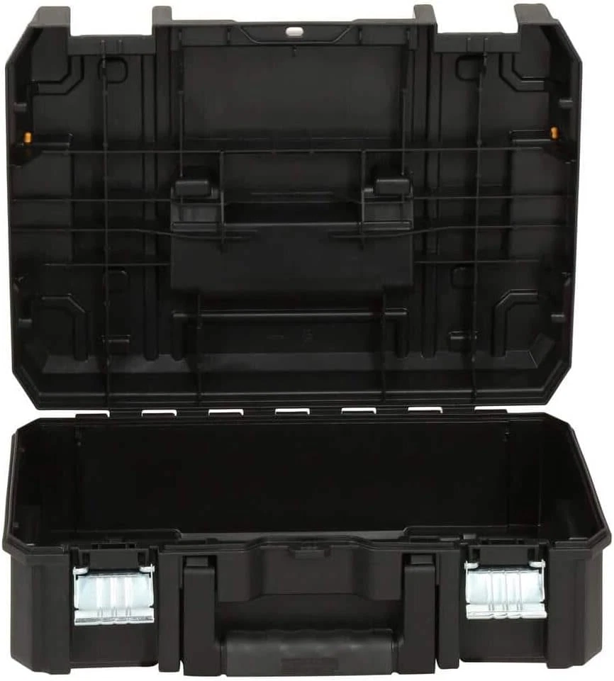 Flexible platform of the tool storage allows different combinations All units of the tool chest can stack on top of the other, connected with durable side latches Bi-material handle on top of each portable tool chest is designed for easy and comfortable lifting Heavy-duty metal latches for rust resistance A rugged and durable tool box, the TSTAK Deep Box easily fits cordless and corded power tools as well as accessories and attachments with ease. Ultra durable and ultra portable, the TSTAK Deep Box is the professional alternative to the standard "tool box". Part of the TSTAK storage system, all TSTAK storage boxes and containers can easily be stacked and attached for quick organization and storage in the shop, or on the job site.