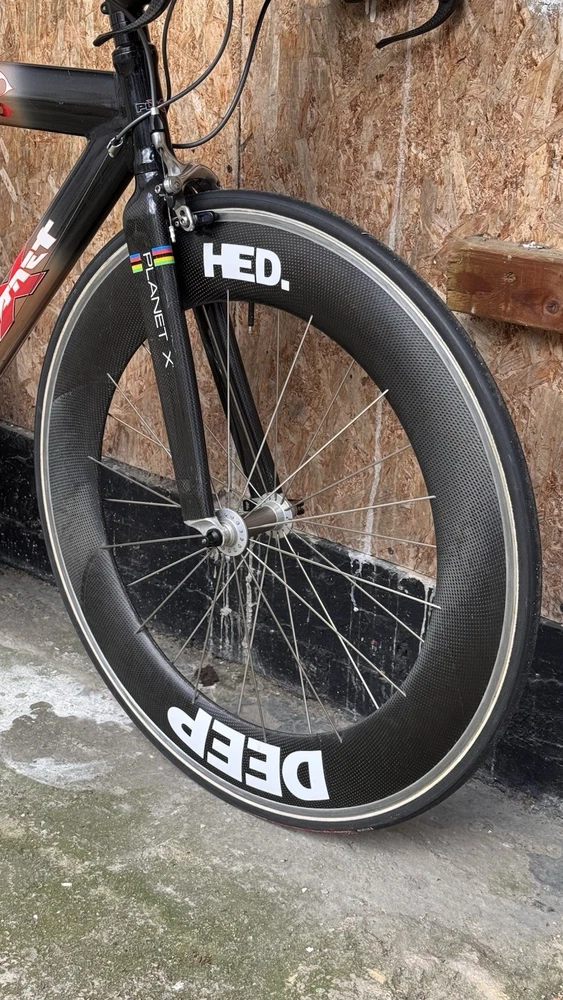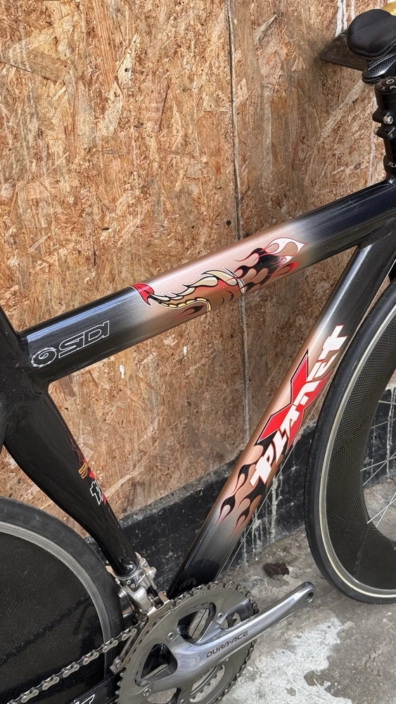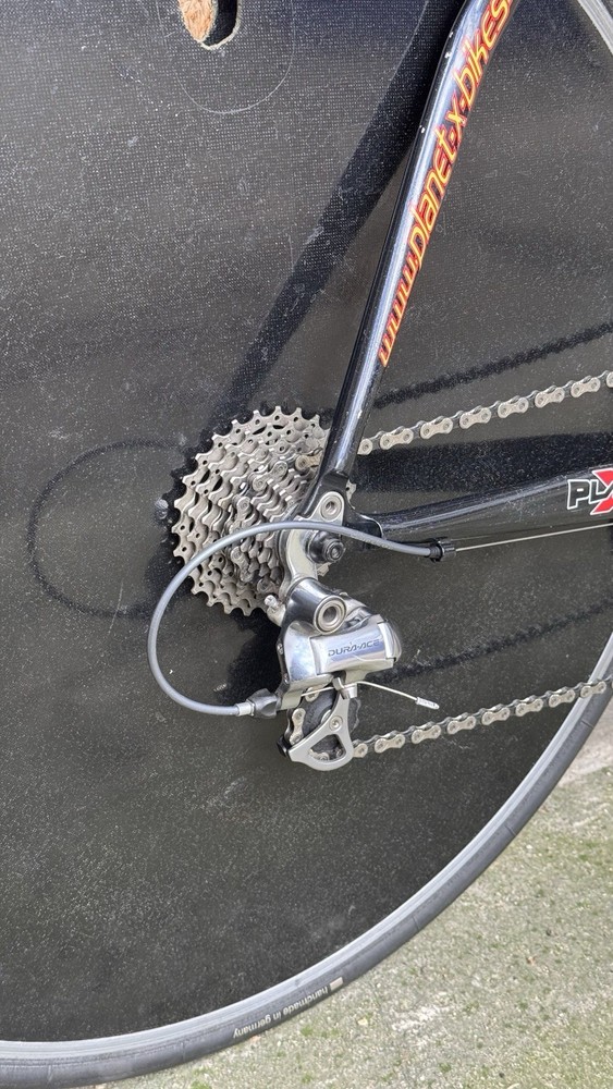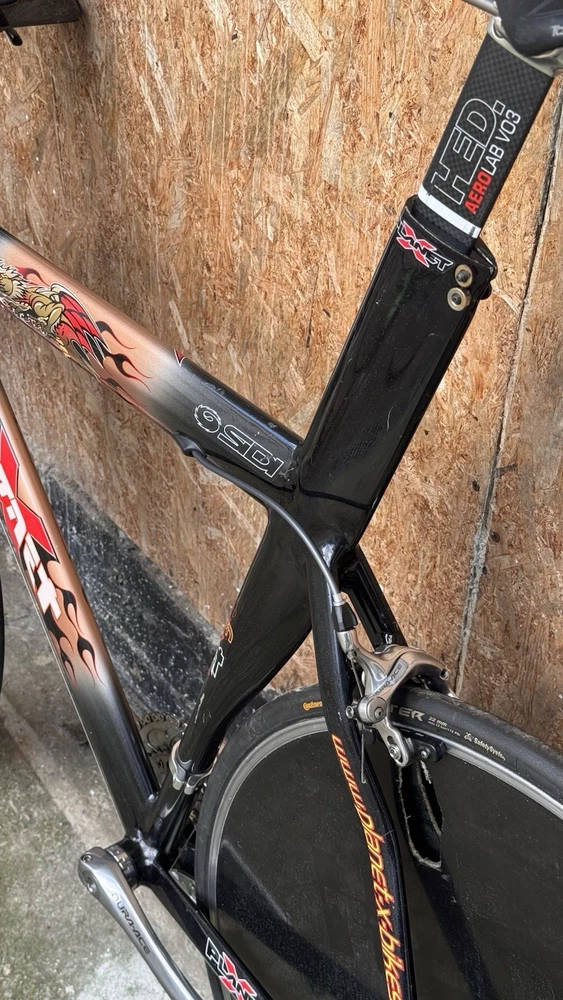 Generally good conditions with some paint chips Shimano Dura Ace 7800 10s with TT bars shifters TT carbon adjustable handlebars With tektro carbon brake levers HED Disc and Deep Carbon wheelset Rim brakes tubular good conditions Was lately serviced plenty of life on components I believe the frame was custom built on size The seat tube is a 72cm wich trimmabe While the top tube is a 56cm c-c Specialized Toupe 143 gel carbon saddle with HollowTI mount Only 10kg World wide shipping Item listed on different platforms Look at my other listings For availability Please ask for info and discount