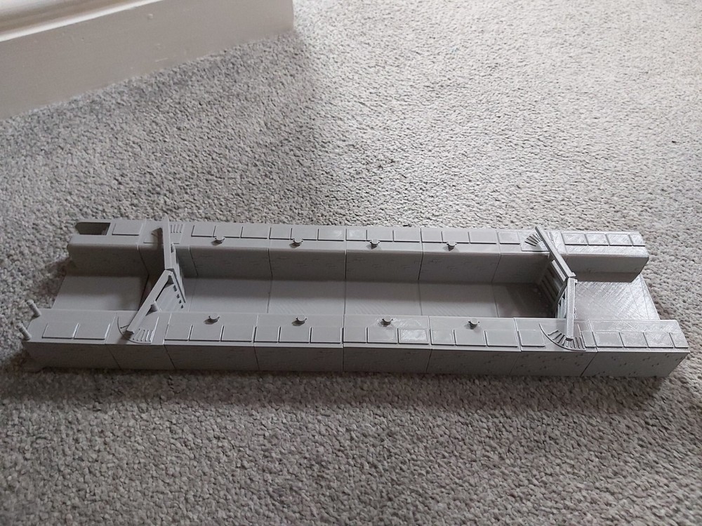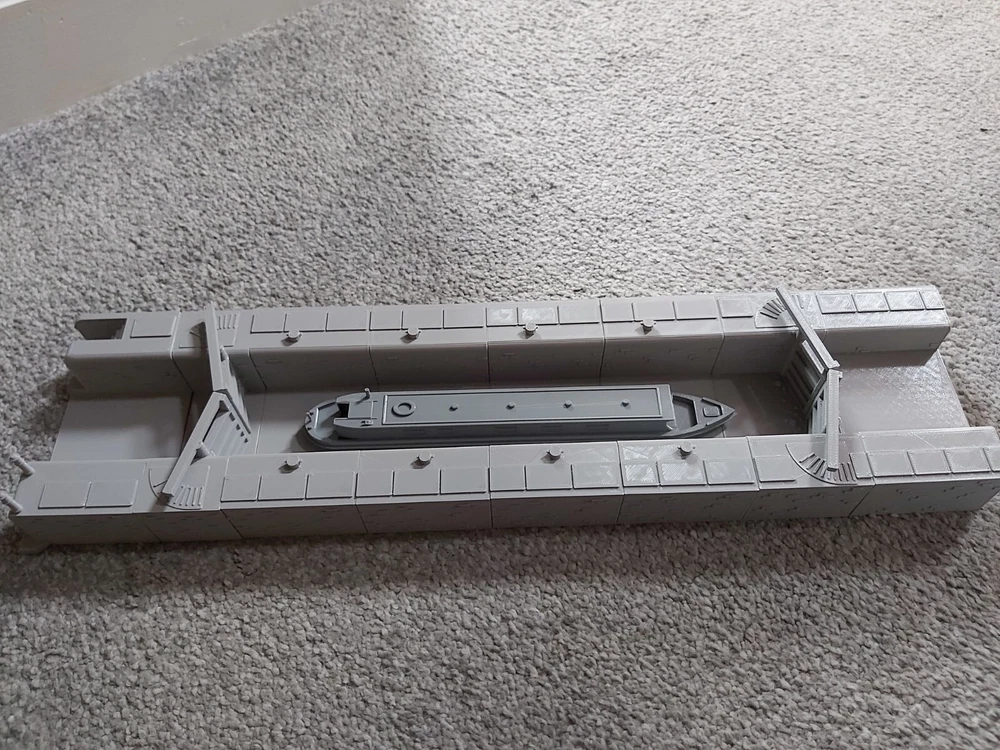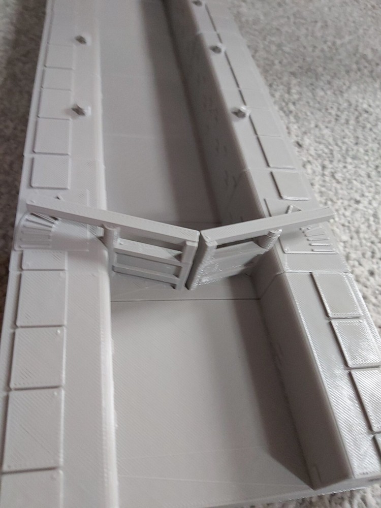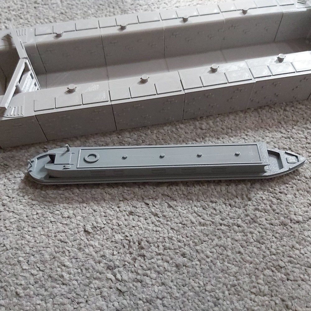 You are looking at a TT120 Gauge Canal Lock with Gates - this item is modular, each piece is separate so if you want a shorter lock you can remove one of the pieces. It will require gluing together, finishing and painting. This item is available in 3 options (as pictured using the dropdown above) - the first is canal gates and the lock itself, the second being the lock, gates and 2 end pieces steps and extra piece of canal, third being complete lock with narrowboat Dimensions approx: Simple Lock: 246mm x 85mm W x 26.6mm H - 6 tiles (Comprising of 2 lock gate tiles and 4 inner lock tiles (inner lock tiles are 72mm long so you can remove one should the lock be too long for you) Lock with steps and extra canal section: 345mm x 85mm W x 26.6m H - 8 tiles (Comprising of 2 lock gate tiles, 4 inner lock tiles, 1 end tile with steps and 1 higher canal level tile) Narrowboat: 173mm L x 22.5mm W x 24mm H (Smoke stack 30mm) Should you require this as a longer item, please let us know before purchasing, as this is modular it is very easy for us to add extra middle sections for you. Note: Narrowboat in the picture is available in our listings separately or as an option in the dropdown with the larger lock, we have several other TT120 Gauge narrowboats in our listings - they will all fit in this lock Please Note: These items are 3d printed, far more sturdy than plaster or laser cut cardboard models, all items come unpainted and any images showing the items painted or as a group are just for illustration purposes only to show you what can be achieved with them. Item will be printed in grey, but please message us if you want any specific colours, available in red, white, blue, brown, yellow or black. The shade of grey may change from time to time due to supply, so if leaving it a few weeks or months in between your orders we can't guarantee your model will be the same shade unfortunately.