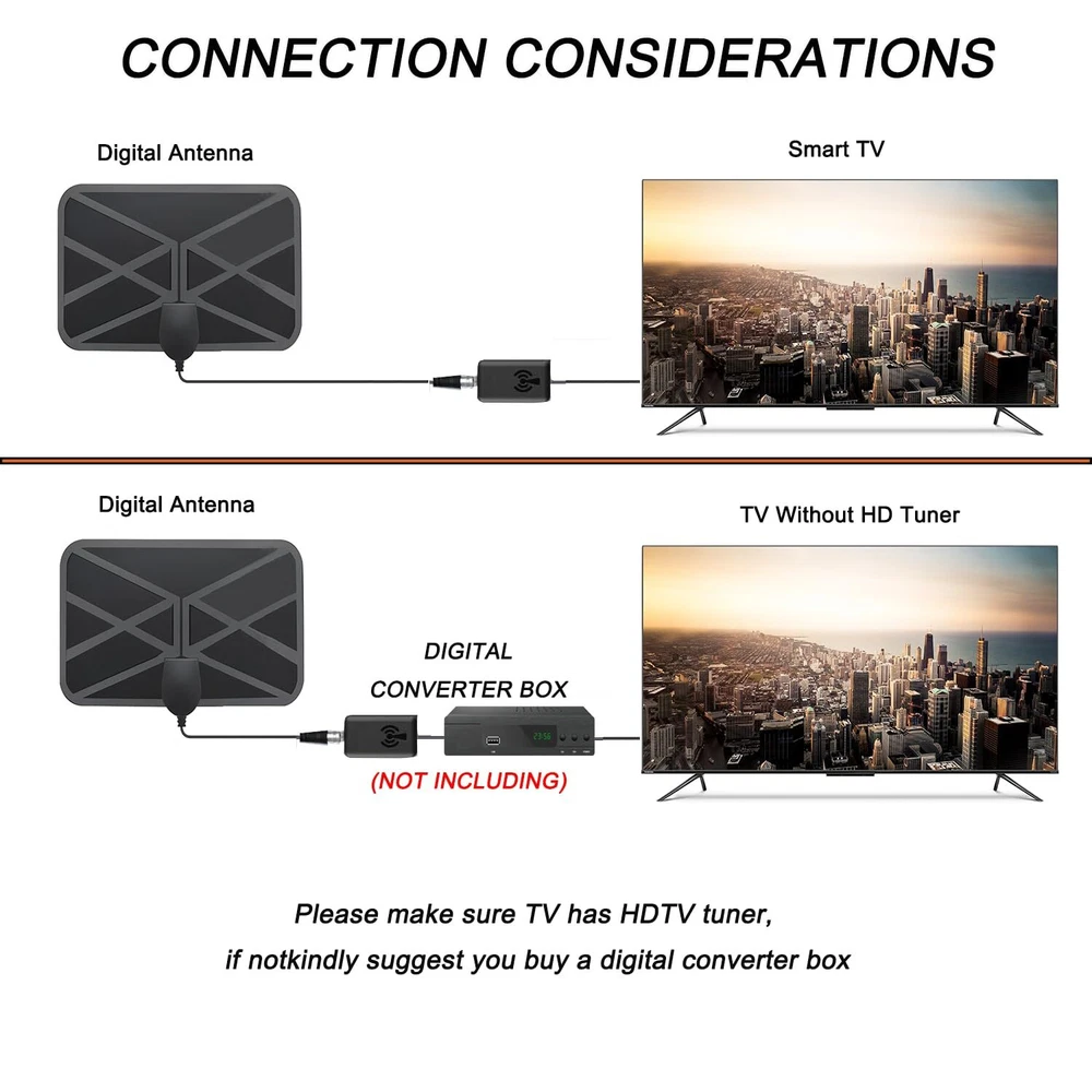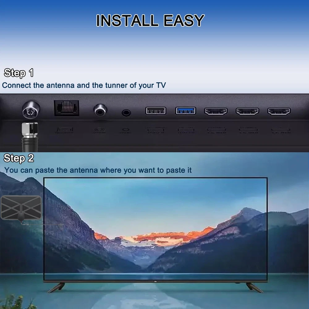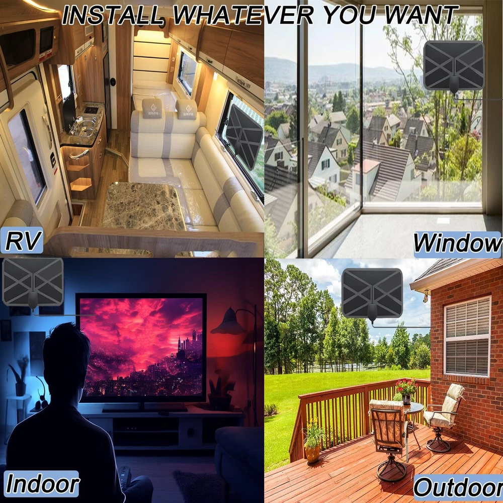 HD Digital TV Antenna - Capture More Channels with Exceptional Clarity Product Description: Discover the HD Digital TV Antenna, an innovative product designed to enhance your home entertainment experience. This TV antenna stands out for its superior performance and user-friendly design, allowing you to receive more local HD channels without the extra cost of cable TV. Key Features: HD Reception: Utilizing advanced technology, it ensures you receive 1080P or even 4K HD signals for an unparalleled viewing experience. Broad Compatibility: Compatible with all digital TVs and 4K Ultra HD TVs on the market, eliminating concerns about model mismatches. Easy to Install: Simple installation steps mean no professional technicians are needed; you can easily complete the setup yourself. Multifunctional Design: Equipped with an internal amplifier and high-quality components, it enhances signal reception and reduces snow 360-Degree Flexible Rotation: The antenna can rotate in all directions, allowing you to adjust to the optimal reception angle and capture the strongest signal. Usage Scenarios: Whether you're watching the news, sports events, or your favorite TV series, the TV antenna provides stable and clear signals for a smoother viewing experience. Installation Guide: 1. Place the antenna in a suitable indoor location, near a window for the best reception. 2. Connect the antenna to the corresponding interface on your TV. 3. Perform a signal search according to your TV's settings menu. 4. Adjust the direction of the antenna until you find the strongest signal source. Why Choose Us: - We are committed to providing high-quality products and exceptional customer service. - Our products undergo rigorous testing to ensure stable performance in various environments. - We believe that the TV antenna will bring a richer entertainment choice to your home. 【400 Miles Signal Reception】TV antennacan search for signals within a range 400 miles, support signal reception stable and crystal image quality, providing a smooth viewing experience. 【Powerful Signal Amplifier】 Our Smart TV Antenna is engineered with advanced technology, provide exceptional signal stability. Enhance signal reception and stabilize signal, Expand reception range. 【18-Ft Coaxial Cable】Coaxial cable is composed of a solid center conductor, dielectric insulation, three aluminum shielding layers, and a durable outer layer. Ensures reliable, interference-free signal reception. It can be used for all digital Ready devices, support 1080P 4K All Old Smart Televisions. 【TV Antenna Indoor for Local channels】With the digital antenna for smart TV indoor, can receive Full HD channels like ABC, CBS, NBC, ABC, Fox and so many more, You can watch news/movies and any your favorite programs, compared with network TV and traditional cable TV, all programs are available for viewing at will. 【Portable and Easy to Install】Soft ultra thing design is more delicate and lightweight, You can place the smart tv antenna behind your TV or in front of a window even outdoors, It is not affected by thunderstorms.the installation is divided into three steps: unwrap, plug it in, and scan channels.