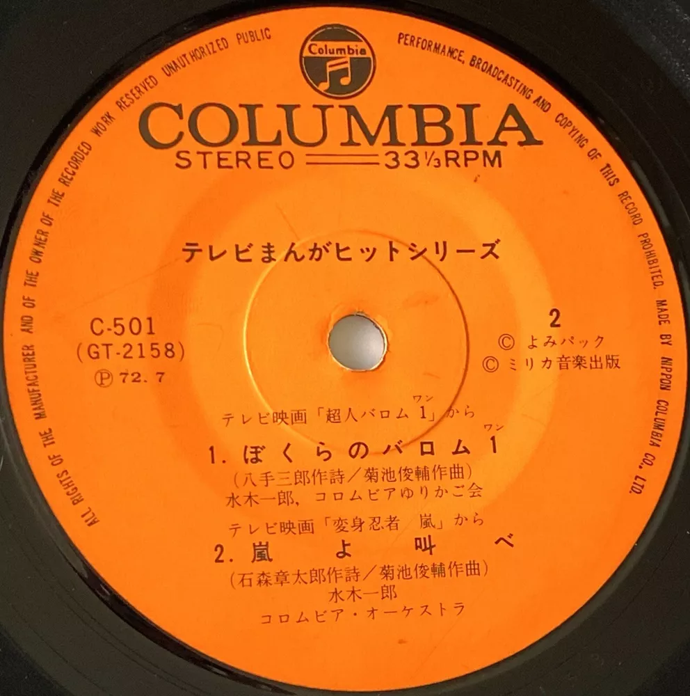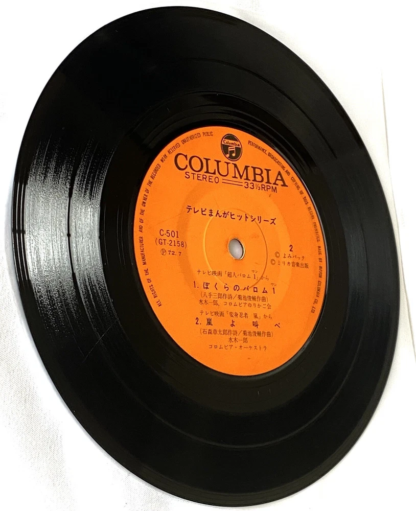 Description Title TV Manga Hit Series (Nippon Columbia C-501) 1972 Japan Record Grading Very Good Plus (VG+) "hairline, surface noise" Sleeve Grading Very Good Plus (VG+) "deterioration over time, slight tear" A guide to Record Grades Sealed(S) Brand New. The record is still packed. Mint (M) Absolutely perfect in every way. Certainly never been played, possibly even still sealed. Cover and extra documents like lyric sheet, booklet or poster are in perfect condition. Near Mint (NM) A nearly perfect record. A NM- record has more than likely never been played, and the vinyl will play perfectly, with no imperfections during playback. The cover should look close to perfect with only minor signs of wear and or age. Excellent(EX) The record shows some signs of having been played, but there is very little lessening in sound quality. The cover and packaging might have slight wear but excellent aspect overall. Very Good Plus (VG+) Most common condition for records. The record has been played a few times but displays no major deterioration in sound quality, no wear, despite occasional light marks.The average person would not notice anything wrong. Cover shows some handling imperfection like normal wear and tear, creasing... Very Good (VG) Now the signs of age and handling are starting to show. You can notice some clear wear on the surface, there is some noise . Cover suffers from folding, scuffing of edges, spine splits, discoloration ... Good Plus (G+) The record has been played so much that the sound quality has been noticeably deteriorated, perhaps with some distortion and mild scratches. The cover and contents can be torn, stained and/or defaced, there also can be some writing on it. Good (G) The record should be just playable but will display considerable surface noise and may even jump or skip. The cover and contents are badly damaged or partly missing. Cover can also be missing. Combined Shipping Welcome! You can save on combined shipping! 1. Please contact us. Please let us know which item(s) you would like. Shipping costs are determined by weight. We will check and give you the total shipping cost. 2. Send Invoice Please purchase unpaid. We will then send you a combined invoice. Please check the invoice and make your payment. "Attention" It is rare that a purchase cannot be processed with no payment due to ebay errors or other reasons. In such cases, please pay in advance and the difference will be refunded. If you are unable to contact us, we can communicate only by invoice. We will inform you of the combined shipping cost on the invoice. We will meet your needs as much as possible. Feel free to email with questions. Thank you for your watching !" Please see our Asahi Sonorama Category.