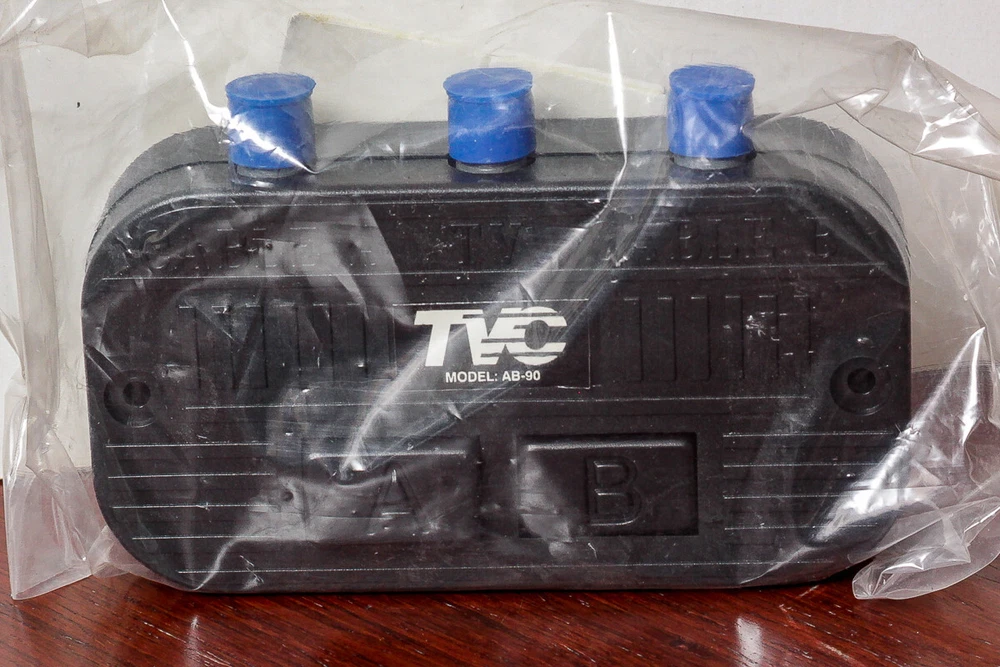 This sale is for a new push button A/B switch for 75ohm coax as used on TV antenna/cable applications. It's brand new in a factory back with a double-sided mounting tape pad and screws to fasten the box down. It has a nice heft to it and the manufacturer went to the expense to cover the connectors to prevent damage so I expect this isn't bottom of the barrel. The shipping weight is 13oz and will ship via USPS Ground, Priority or Express. Shipping takes an extra day from my local post office. No international shipping nor to freight forwarding companies.