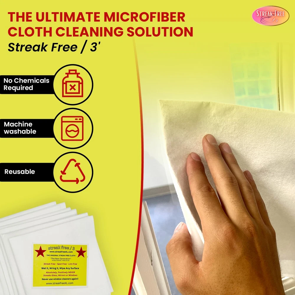 1 EFFICIENT CLEANING - Say goodbye to streaks and smudges on your windows, mirrors, and glass surfaces with the Streak Microfiber Cloth. Its advanced microfiber technology ensures a thorough and streak-clean every time. 6 PACK FOR CONVENIENCE - With 6 cloths in pack, you'll have enough to tackle all your cleaning needs. Keep them handy in different areas of your home for quick and easy access whenever you need them. NO CHEMICALS NEEDED - These cloths are designed to work effectively with just water, eliminating the need for harsh chemicals that can be harmful to you and the environment. It's a safer and more eco-friendly option for all your cleaning needs. MULTI-PURPOSE USE - Not just for glass surfaces, these microfiber cloths are also great for cleaning stainless steel appliances, countertops, and other hard surfaces. They can even be used as dusting cloths or car detailing rags. SUPERIOR CLEANING - Trust in the quality of a product that has been featured on TV for its superior cleaning abilities. The Streak Microfiber Cloth is durable, long-lasting, and machine washable for repeated use.