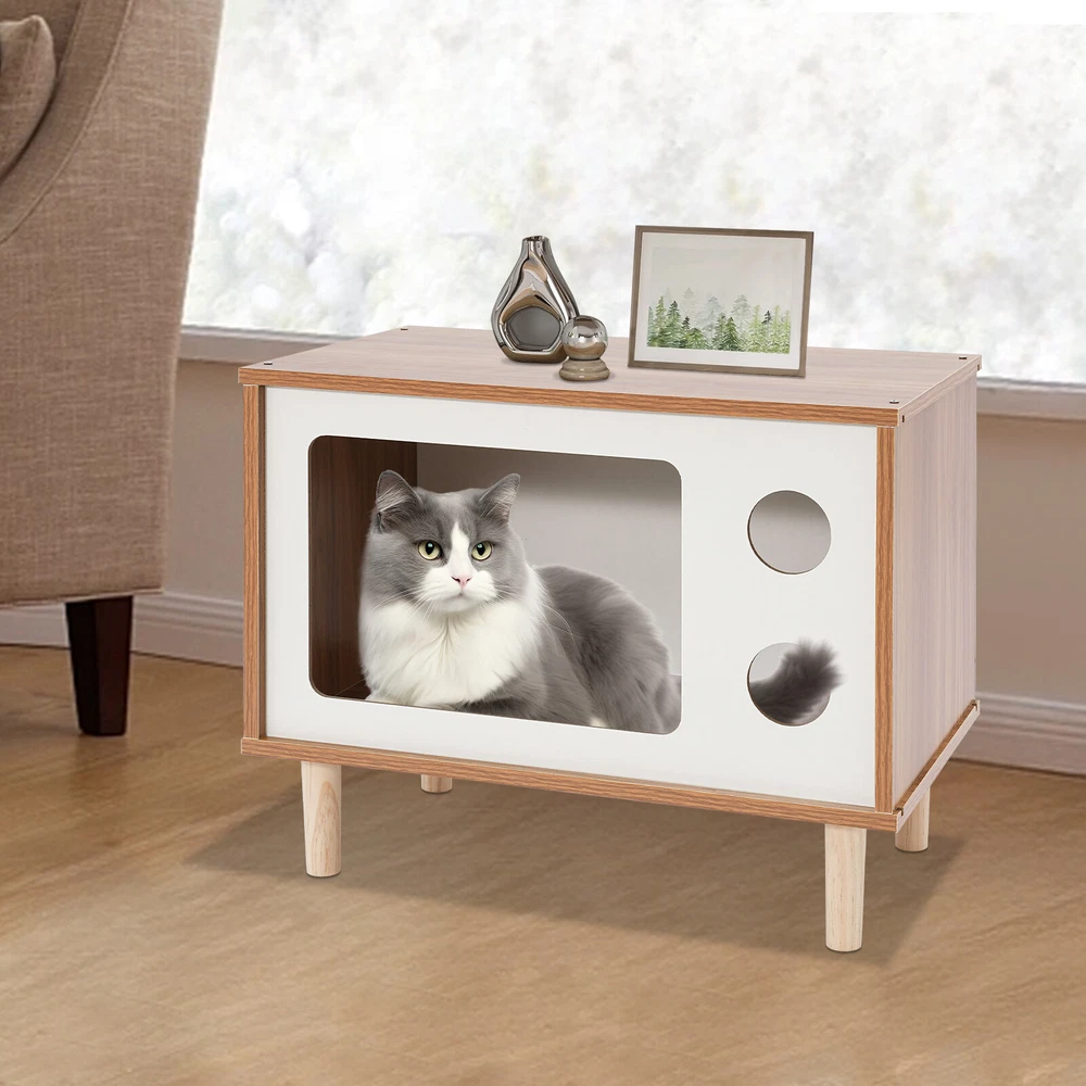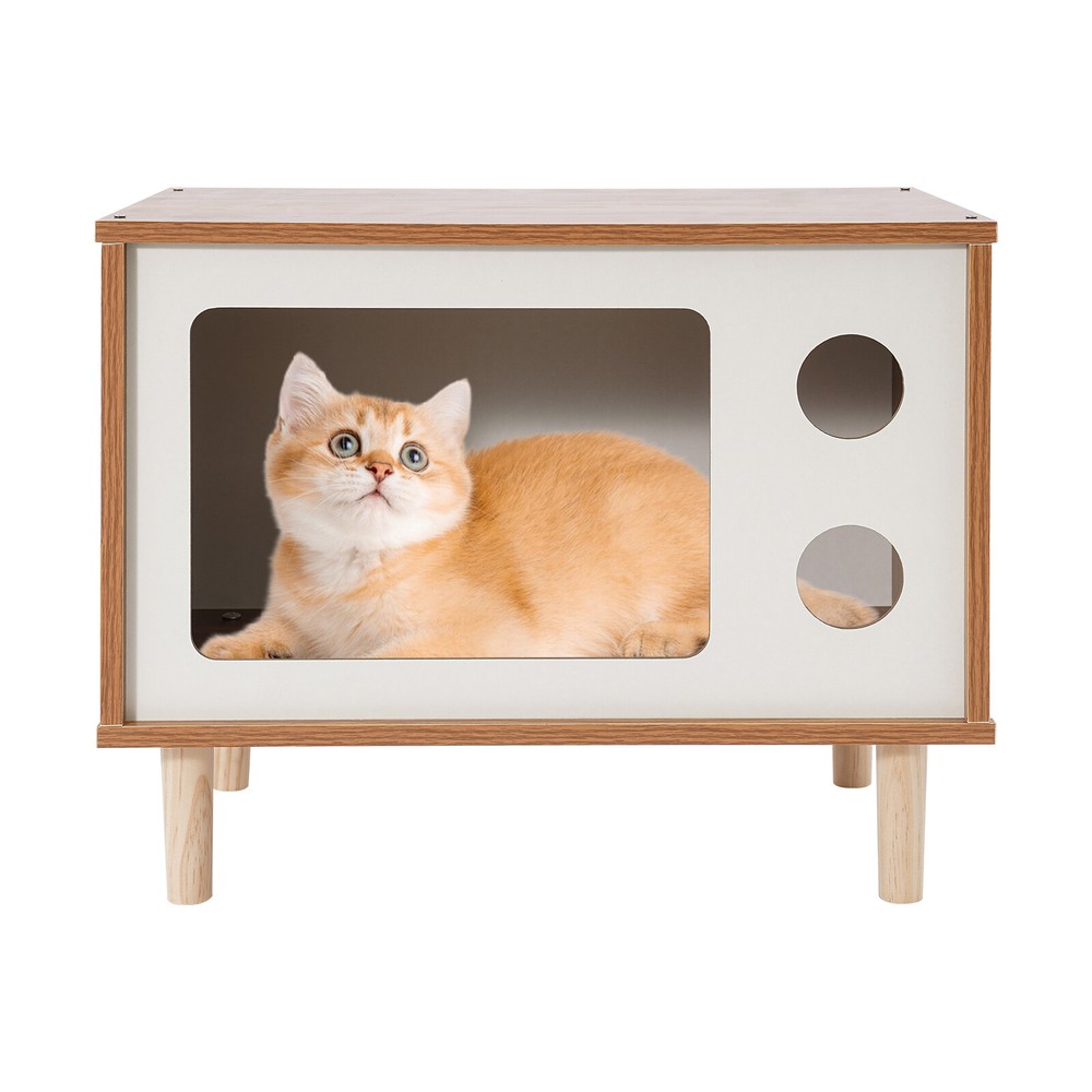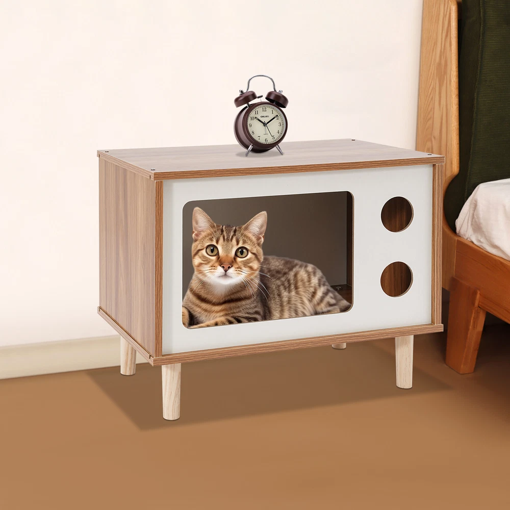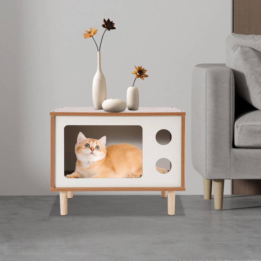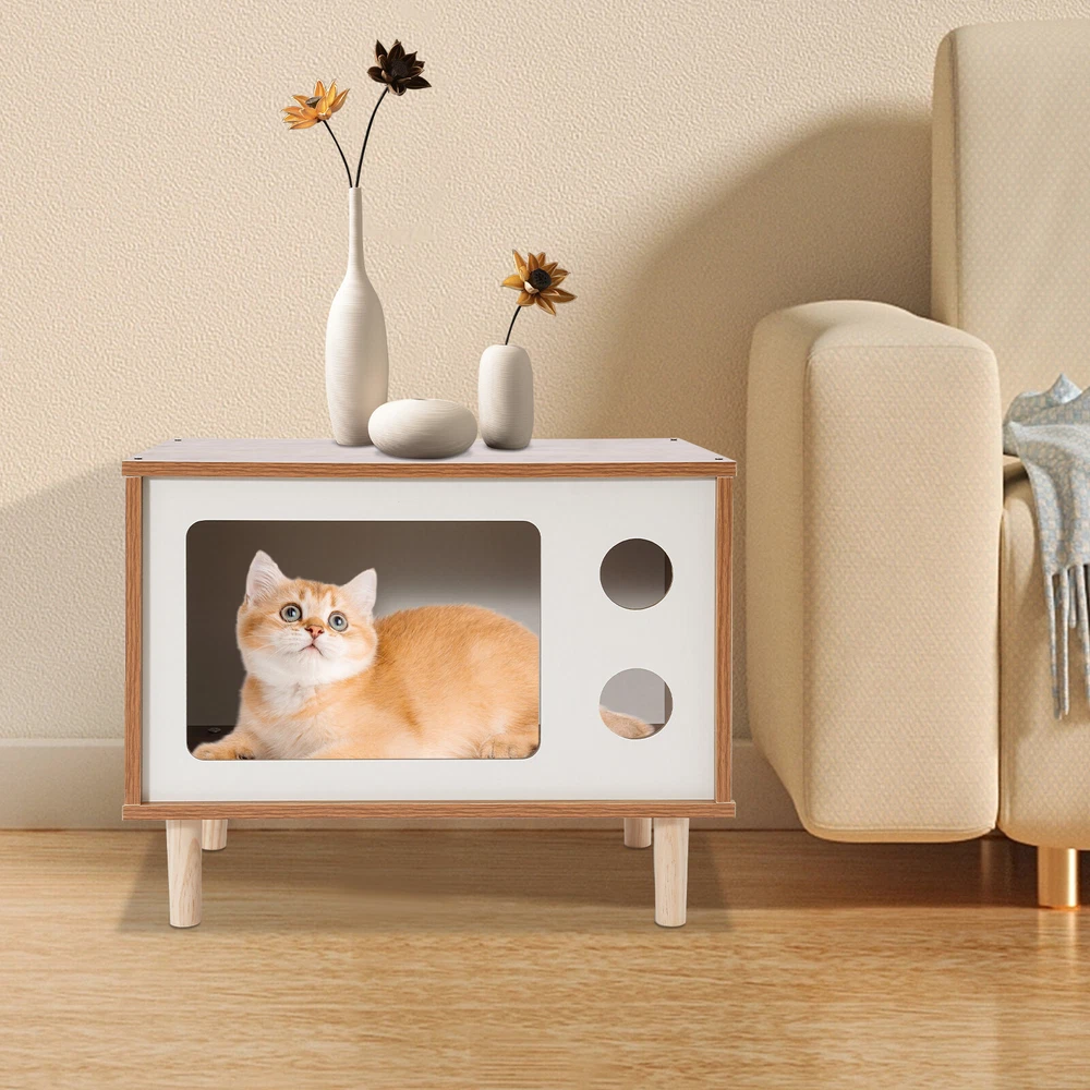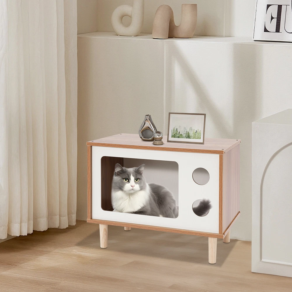 Floorstanding Cat House Cat Bed Indoor TV-Shaped Cat Shelter Load 75kg/165.35lbs Description This cat house cleverly combines a pet resting area with practical storage space and is built with high-grade materials to ensure long-lasting and stable use. It provides a cozy nest for your beloved pet without losing a touch of natural and elegant decoration for the bedroom, which is an ideal choice for pet lovers. Key Features Selected Material: Made of E1 MDF and solid wood legs after sanding, it is wear-resistant, impact-resistant, odorless, with great sturdiness, harmless to the health of pets and the human body, and guarantees a long service life. Pet Friendly: The opening in the front is designed for easy access for cats, and the two round holes can be used as viewing windows. This makes it easy for you to interact with your cat through these holes. The TV-shaped appearance also increases your cat's sense of security and fun. Stable and Sturdy: Four solid wood legs ensure that the cat house is stable and sturdy. With a weight capacity of approximately 165.35 pounds, it won't easily topple over even if a few cats jump on it. It can also be used as a reliable stool for you to sit and rest when you are tired. Moderate Size: The compact size (19.7*11.4*15.7 inches) is suitable for placing at the head position of the bed in the bedroom, which will not take up too much space, but also meet the needs of storage and pet rest. Easy to Clean: The smooth surface is easy to clean, you just need to wipe it with a damp cloth (not included) to keep it clean and tidy. Beautiful and Fashionable: The simple style design with a walnut and white color scheme is both beautiful and fashionable, which can fit well into various home styles. Easy to Install: With modular design, pre-drilled structure, and complete installation accessories, you can easily assemble it by yourself. Customer Service: We aim to provide quality products and services. If you have any problems, please feel free to contact us. We will reply and solve the problem for you as soon as possible. Details Smooth Edges: The smooth and burr-free edges enhance the beauty of the product and better care for your skin when installing and cleaning it. Sturdy Support Legs: 4 3.94-inch high solid wood legs ensure the stability and solidity of the product and also accelerate air circulation to prevent the cat house from moisture. Thoughtful Holes: The holes in the front allow air to circulate through the cat house so that cats can breathe fresh air. Application It can be used as a cat house or cat jumping platform for all kinds of indoor cats and small dogs weighing around 9.92 pounds, etc., as well as a nightstand, coffee table, footrest, decorative item, living room decoration, etc. How to Install Locate all accessories. Install the bottom. Install the side panels and front and back panels. Install the top panel. Installation complete. Specification Mount Type: Floorstanding Assembly Required: Yes Shape: TV-shaped Style: Modern Material: E1 MDF, Solid Wood Process: Sanding Color: Walnut, White Applicable Cat Weight: Approx. 4.5kg/9.92lbs Overall Load-capacity: About 75kg/165.35lbs Support Leg Height: 10cm/3.94in Product Size: 50*29*40cm/19.7*11.4*15.7in Package Size: 58*40*10cm/22.83*15.75*3.94in Gross Weight: 6kg/13.23lbs Net Weight: 5.7kg/12.57lbs Package Included 1* Cat House 4* Support Legs Other Mounting Accessories Notes Please check the style and size before purchasing. Please do not place items on it that exceed the product's load-bearing capacity. Please allow the slight color difference caused by the shooting light and 1-3cm error due to manual measurement and make sure you do not mind before ordering. Payment Delivery details Terms of sales About us Contact us Payment We accept ebay payment 。 Fees such as import duties, taxes are not included in the item price or shipping costs. These charges are the buyer's responsibility. Delivery details Shipping: 2-9 working days to: USA Terms of sales We maintain high standards of excellence and strive for hundred percent customer satisfaction. Feedback is very important to us. We hope that you contact us immediately before you give neutral or negative feedback, so that we can address your concerns. It is impossible to address issues if we do not know about them! About us Your satis faction is our ultimate goal. We work hard to earn your trust and future business. Our certified technicians have tested each item before shipping. The unit comes with 1 year limited warranty on all manufacturing defects. a) If you receive a defective item, you may return it or ask for a discount. Please contact us within 14 days after you receive the package. b) What you returned must be intact and in its original packaging as re? u. Customer is responsible for shipping costs of the returned item. c) We will cover the cost of shipping back t with the shipping rate indicated in the registration page. We will send you a new unit or refund the full payment you paid. Thank you. Contact us Business Hour Business Hour: Monday To Friday: 8:30 AM to 5:00 PM (Beijing China time) Due to time zones, our reply to your questions may not be immediately. But within above working time, we will reply your email within 24 hours. If it's non-workdays, please kindly be patient and wait till Monday. Please contact us with ebay message. Please feel free to contact us if you have any questions. Monday To Friday: 8:30 AM to 5:00 PM (Beijing China time) Due to time zones, our reply to your questions may not be immediately. But within above working time, we will reply your email within 24 hours. If it's non-workdays, please kindly be patient and wait till Monday. Please contact us with ebay message. Please feel free to contact us if you have any questions. Type Cat House Brand Unbranded Material E1 MDF, Solid Wood