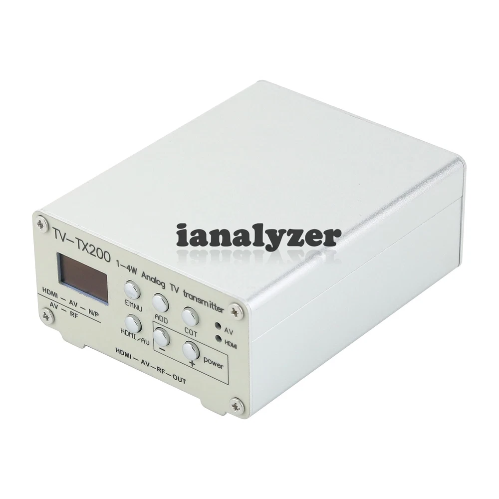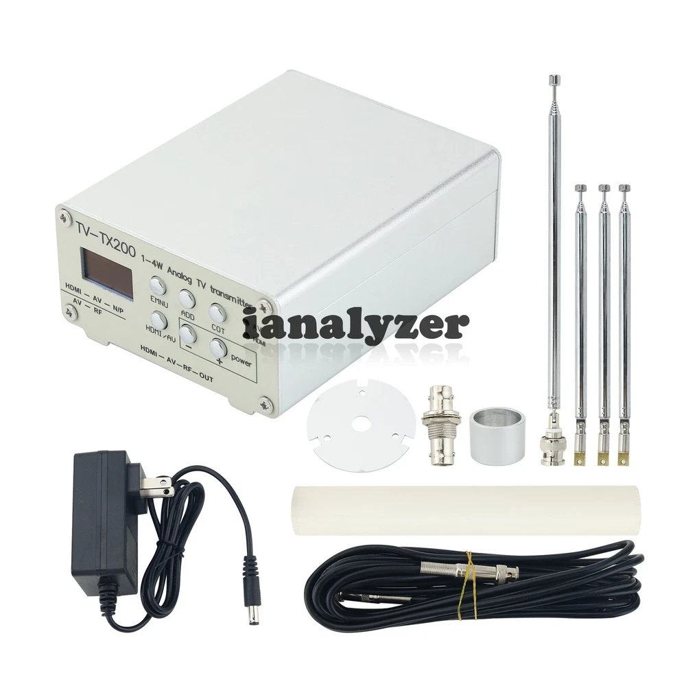Description TV-TX200 VHF/UHF Analog TV Transmitter Support HD/AV Input Analog Signal Transmitter with GP Umbrella Antenna Description: - When the transmission distance is over 100 meters, choosing GP antenna has better effect. Using GP antenna for transmission can choose 24V power supply. - The transmission channel can be set through buttons: VHF/5 - 12 channels UHF/13 - 36 channels - Choose a hardware transmitting antenna, minimize the power, and use 12V power supply. Functions: - Support high-definition input, high-definition input can be converted to N format and P format. - Supports AV input, but cannot convert to N format. - Supports converting high-definition input into AV signal output for other displays with AV, such as LCD TVs, and can also transmit signals. - Support accompanying sound settings of 4.5MHz-6.5MHz. FM Transmission: - Simple FM signal transmission, with good transmission effect. The method is as follows: Set the frequency to 85.25 in the VHF band and change the accompanying sound frequency. Adding 85.25MHz to the accompanying sound frequency equals the receiving frequency of the radio. 85.25MHz + 6.5MHz = 91.75MHz 85.25MHz + 6.0MHz = 91.25MHz 85.25MHz + 5.5MHz = 90.75MHz 85.25MHz + 4.5MHz = 89.75MHz Package Included: - 1 x Analog TV Transmitter - 1 x GP Umbrella Antenna Payment Terms 1. We accept PayPal,Payoneer,Visa Card,Google pay,Credit card etc. 2. We ship to your eBay or Paypal address. Please make sure your eBay and Paypal address is correct before you pay. Shipping Terms 1. We will process the order within the handling time ,if you have any questions, please contact us via eBay message or email. 2. For remote regions of DHL/FedEx..., extra shipping costs might be charged. Usually it costs about 30USD-50USD. We will contact you if shipping company informed us your address belongs to remote area. Thanks for your understanding. Return Terms If you receive the item that not satisfied or defective, please do not open case and kindly notify us within 30 days. We will guide you the returning process for replacement or refund. Custom Duties & Taxes 1. It is buyer's responsibility to cover the import duties, taxes.We do not charge any taxes and fees, and the possible taxes and fees will be collected by the platform or by third parties such as customs and carriers. 2. Please check with your country's customs office and inform us what/how much should declare before shipping. Feedback 1. Please kindly leave us a positive feedback and 5 star DSR if you satisfied with our product and service. Please feel free to contact us firstly if you have any problem with your order, we are responsible and credible seller and will solve the issue it for you asap. 2. If you are dissatisfied for any reason, please don't be quick to leave us neutral or negative feedback. We work hard to make sure EVERY CUSTOMER 100% SATISFIED and resolve any problem for you and always leave positive feedback to all our customers.