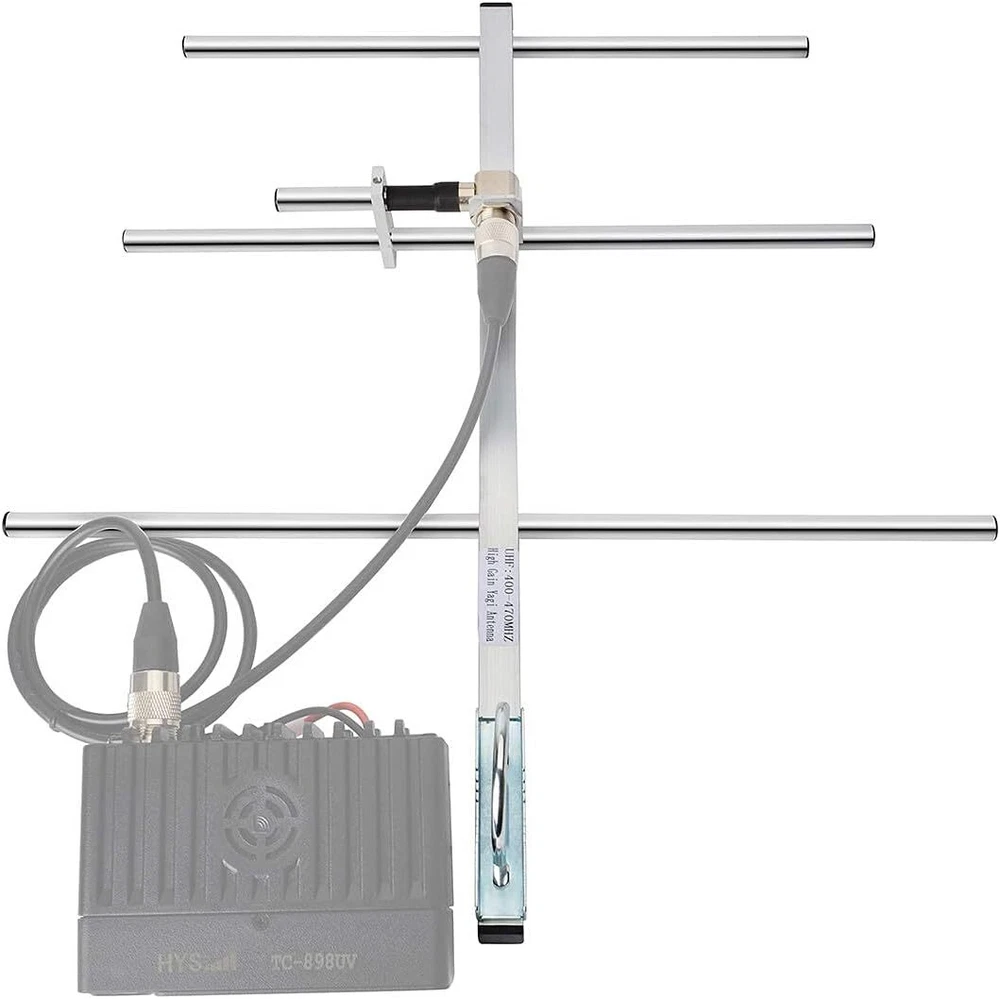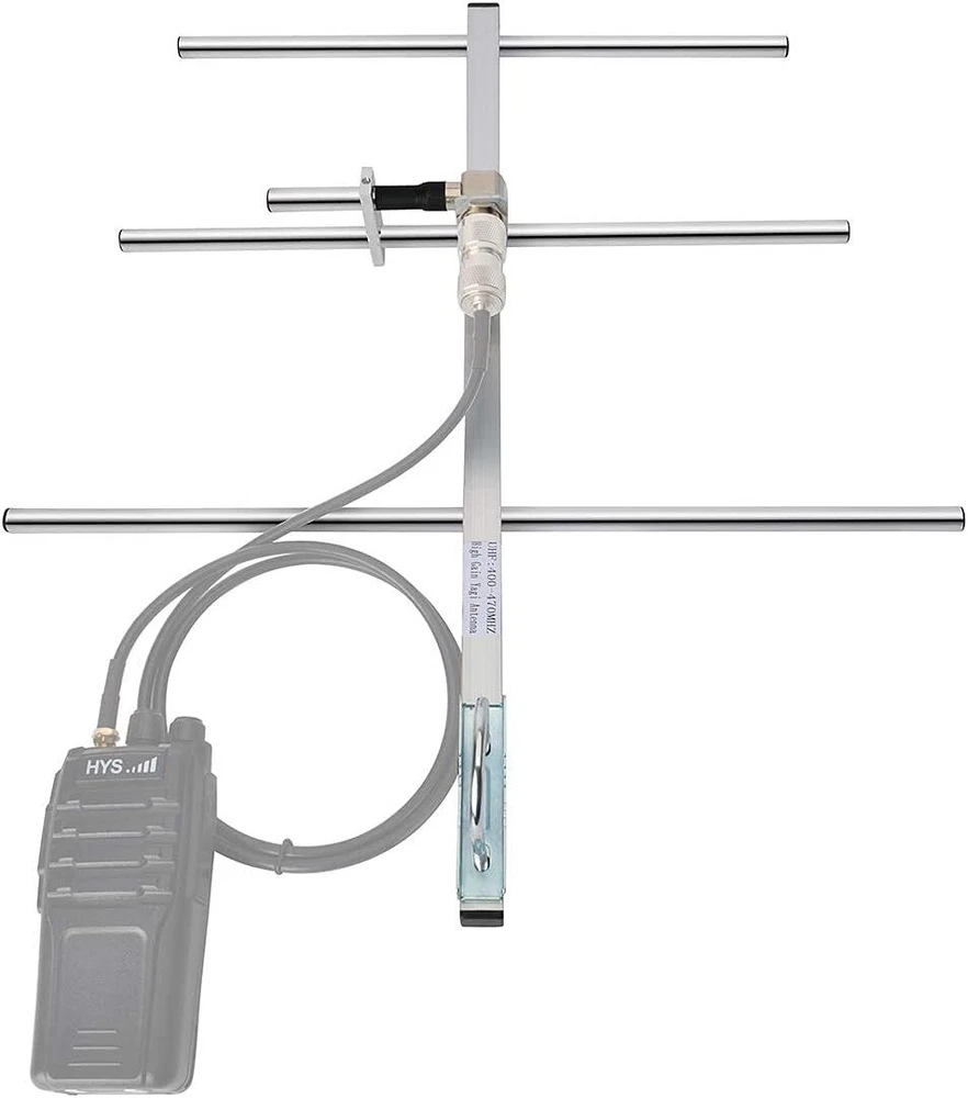TWAYRDIO Yagi Antenna UHF 400-470Mhz,High TWAYRDIO-YG03 400-470MHZ 3 elements Product Details Product Dimensions: 14.96 x 1.89 x 16.93 inches Item Weight: 12 ounces Manufacturer: Quanzhou Hai Mao Wei Communication Co., Limited Country of Origin: China Item model number: TWAYRDIO-YG03 Antenna: Satellite, Radio Brand: UAYESOK Color: TWAYRDIO-YG03 400-470MHZ 3 elements Impedance: 50 Ohm Product Dimensions: 1.89"H Number of Items: 1 [Directional YAGI antenna]Frequency:UHF 400-470MHz; Maximum Power Input-watts: 100W; Gain:7dBi(430MHz); Connector: SL16/UHF Female; Impedance: 50Ω; VSWR: less than 1.5; Bandwidth:20MHz; Front To Back Ratio: >15 dB 3 Elements; Weight:0.3Kg; Size:430mm*380mm; Rated wind velocity 60 m/s; Mounting hardware:Ø30~Ø40 mm; Polarization: Horizontal 3dB Beam Width: 53° ; Vertical 3dB Beam Width: 45° [Simple construction,Easy Tuning and Assembly]The surface is made of aluminum alloy,Antioxidant,make the antenna bright and clean,sturdy and durable,good environmental adaptability.Lightweight,High strength,Waterproof,Corrosion resistant. The body of the Yagi Antenna makes it highly resilient to outdoor use. Strong wind resistance,Rated wind velocity 60 m/s.Securely attached to the mounting surface with the U-Bracket. High gain benefit,great front to back ratio;Strong directionality. Yagi Antenna greatly increase the signal strength of your radio,strong anti-jamming,provides stable signal,hit your repeater easily,get long distance communication. Yagi Antenna Widely used in various directional divice:For Baofeng Motorola Yaesu Kenwood amateur 2 Way Radio;GMRS Repeater Systems;police scanner;433mhz radio system;data radio;satellite work,ISS (international Space Station)contact;Digital Radio. Note: 1. It is not for use on the 2meter band,CB band or wifi. 2. Never mount a vertically polarized yagi in the middle of the boom on a metal mast. 3. When receiving, when the vibrator is perpendicular to the ground, it is conducive to long-distance communication. If the vibrator is parallel to the ground, it will affect the gain and form an Angle with the ground, which is not conducive to long-distance communication. 4. The Yagi antenna is no need operates for a grounding in most cases. But you can ground antenna via the outer conductor of the connector and the cable, or through the mounting hardware, you can install a lightning surge protector between the Yagi and a device to prevent a lightning strike to the antenna from damaging your device and equipment. Yagi antenna is composed of an active vibrator, a reflector and a number of director.A reflector longer than the active vibrator reflects director, which is shorter than the active vibrator,directs the reflectors and director on both sides of the active vibrator change the original bidirectional radiation into unidirectional radiation to improve gain of the antenna has a simple structure, high gain,is widely used in UHF/VHF frequency band.(5 Elements yagi is only work for UHF frequency) VHF Yagi: ###,### Questions 1: Is the SWR of the antenna to be less than 1.5? Answer 1: Antennas are rigorously tested by a comprehensive measuring instrument before the delivery, the SWR conforms to the technical parameters provided by the manufacturer (less than 1.5) within the frequency range of the the test results of SWR are affected by many factors, such as test frequency, antenna installation mode and installation position, feeder line, test instrument and so on.Generally speaking, antennas can be used normally when SWR under your antenna's swr is too high,we will be happy to analyze and solve for you. Questions 2: Is the antenna suitable for indoor or outdoor use? Answer 2: It can be used both indoors and depends on what you use it for.