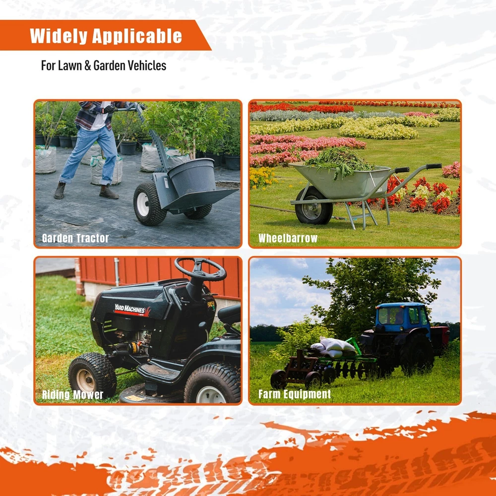 20x10-8 Lawn Mower Tire Specification: TT/TL: TL Tire Aspect Ratio: 60% Ply Rating: 4PR Tire Overall Diameter:20'' Tire Section Width:10'' Rim Diameter: 8'' Rim Width: 7'' Tread Depth: 0.28'' Load-index: 87 Tyre Pressure(psi): 22 Speed Rating: A3 Load Capacity: 1200lbs Weight: 12.8lbs Features: Heavy Duty 4PR Bias Rating Design Turf Friendly Pattern Design Superb Traction & Control Self-cleaning grooves help to keep the tread pattern fully engaged with the turf Replacement for many kinds of lawn mower,garden tractor ect. Easy to install Package Include: 2 Tires