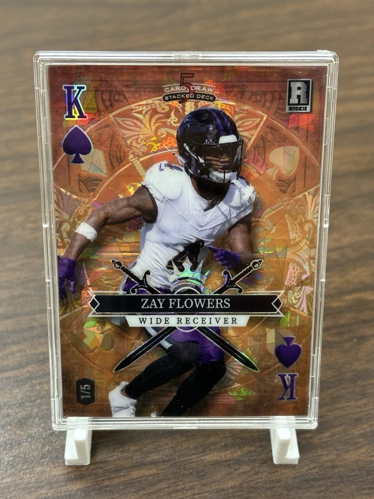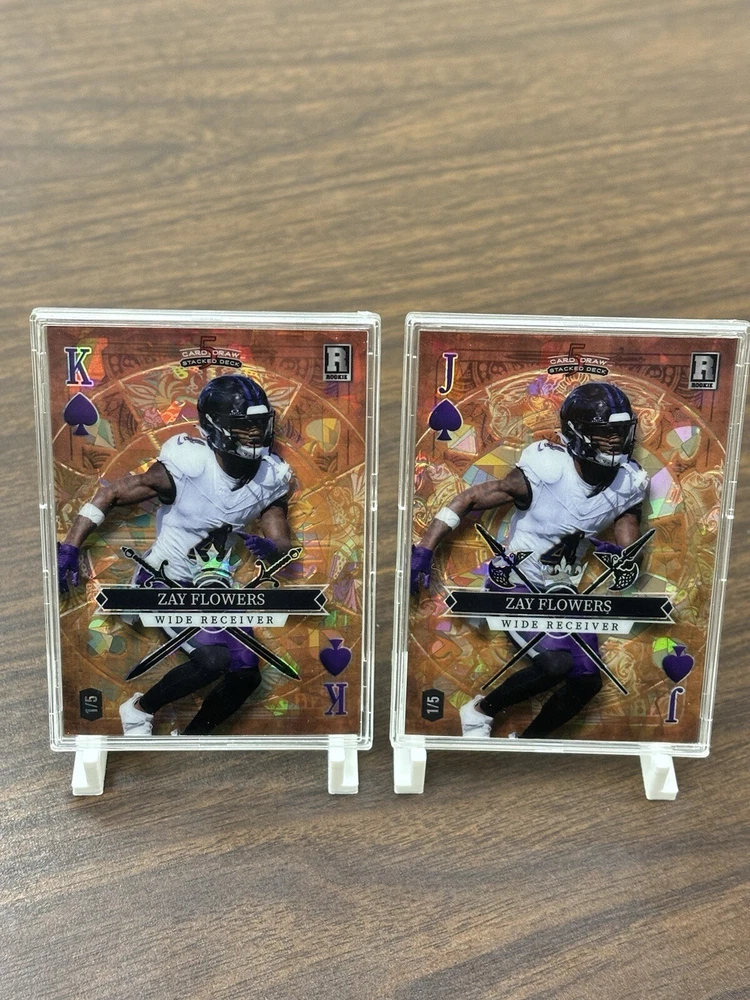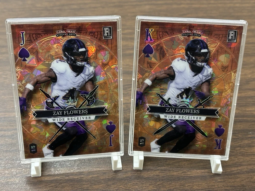 TWO Zay FLOWERS 2023 Wild Card 5 Draw Stacked Deck 1/5 RC Orange Baltimore RAVENS cards. Condition is Ungraded. Since less that 20$ I am going to send over in an envelope. Both cards will be TOP loaded. Super dope cards good for any ravens fan or NFL fan.