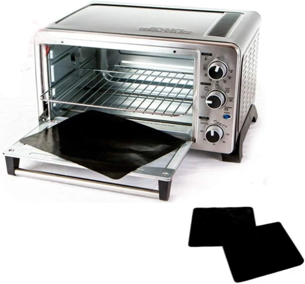 TWO-PACK 100% Non-Stick 11" Polytetrafluoroethylene 11 x 9 inches, Black Product Details Material: Polytetrafluoroethylene Size: 11 x 9 inches Color: Black Brand: bouti1583 Item Weight: 0.11 Pounds FOR A CLEANER OVEN: 11" x 9" PTFE TEFLON toaster oven liner keeps oven clean. Catch all drips, spills and debris eliminating stuck on mess on the bottom of your toaster oven. Clean up is simple and effortlessly. Stop wasting unnecessary time and effort cleaning your toaster oven; VERSATILE, QUALITY MATERIAL: Heavy duty professional grade but can be cut to size easily with household scissors; easily tolerates temperatures up to 500 degrees; can be used as an oven or pan liner, baking/cooking sheet or mat WORKS IN ALL OVENS: Convection, Electric, Gas, Microwave EASY TO CLEAN: Safe & Healthy, non-Stick PTFE is durable and cleans up easily; dishwasher safe SAVES YOU TIME AND ENERGY& MORE HAPPY: Save time, effort, and hard work time after time, use after use.