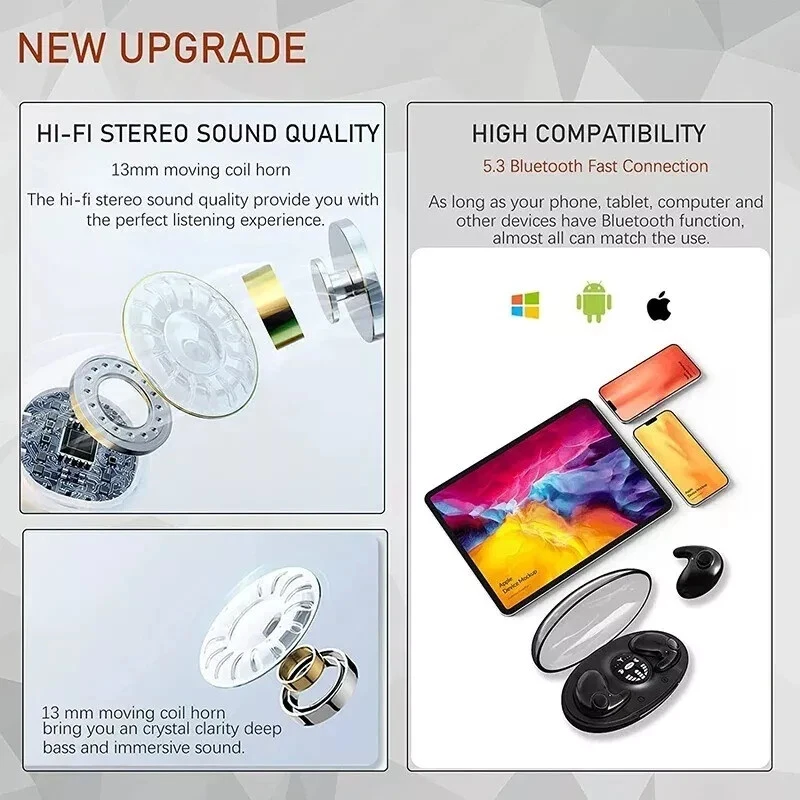 BLUETOOTH EARBUDS HEADSET TWS5.3 INEAR WIRELESS EARPHONE INVISIBLE FOR ALL PHONE DESCRIPTION More than 70Hrs Playtime and Digital Power Display: The charging case battery capacity for TAGRY X07 Bluetooth headphones is 600mAh, which can provide 5 full charges for each earbud. A single ear bud can last up to 8hrs for music time. You can enjoy these music wireless Bluetooth earbuds for up to 80hrs by using in turn. These compact wireless earphones are designed with dual battery display. This power display feature can let you know the battery level for charging case and earbuds charging status. IPX7 Waterproof and Design for Sports: TAGRY X07 Bluetooth earbuds are rated IPX7 Waterproof. The nano-coating on earphone surface prevents damage from sweat and water, making these wireless sport headphones suitable for gym and exercises. The over-ear Bluetooth headphones, featuring soft and flexible earhooks, ensure a secure fit that stays in place no matter how vigorous your exercise. Born for sports, such as exercising, running, hiking, camping, yoga, cycling, motorcycling, and more. HiFi Stereo Sound and Crystal Clear Audio: The TAGRY X07 Bluetooth wireless headphones are equipped with 11mm double-layer diaphragm drivers, delivering an immersive and well-balanced sound experience with punchy bass and crystal clear mids and highs. X07 black music earbuds bluetooth wireless support both mono and stereo modes, providing a crisp and balanced audio music experience. Each Bluetooth earbud features microphone for clear call performance by reducing surrounding noise. Bluetooth 5.3 Technology and Widely Applicable: TAGRY X07 wireless Bluetooth headphones are powered by advanced Bluetooth 5.3 technology, minimizing the chances of interference and disconnections. This ensures a faster and more stable connection between the Bluetooth earphones and your devices. These Bluetooth wireless earphones are compatible with all Bluetooth-enabled devices such as cellphones, TV, smart watches, PC, tablets, laptops, and more. One Button Control and Auto Pairing: These wireless earphones featured with one funcational button,you can click the button to switch the music,adjust volume, answer/end phone calls,activate voice assistant. After first pairing successfully, these bluetooth wireless earphones will connect with your previous device automatically once you take out ear buds, providing more convenient and faster using experience. The connect range between X07 wireless bluetooth earbuds and device is about 33 feet . Contact uyida-elecstore We appreciate you leave 5 star positive feedback for us upon receipt of your item, if your item hasn't arrived or isn't as described and want to leave a negative feedback, contact us first. Give us a chance to make things right for you, you can be contacted at any time through the eBay messaging system.We will respond to you within 24 hours and do our best to help you out!because Negative Feedback doesn't solve problems. Thank you very much~