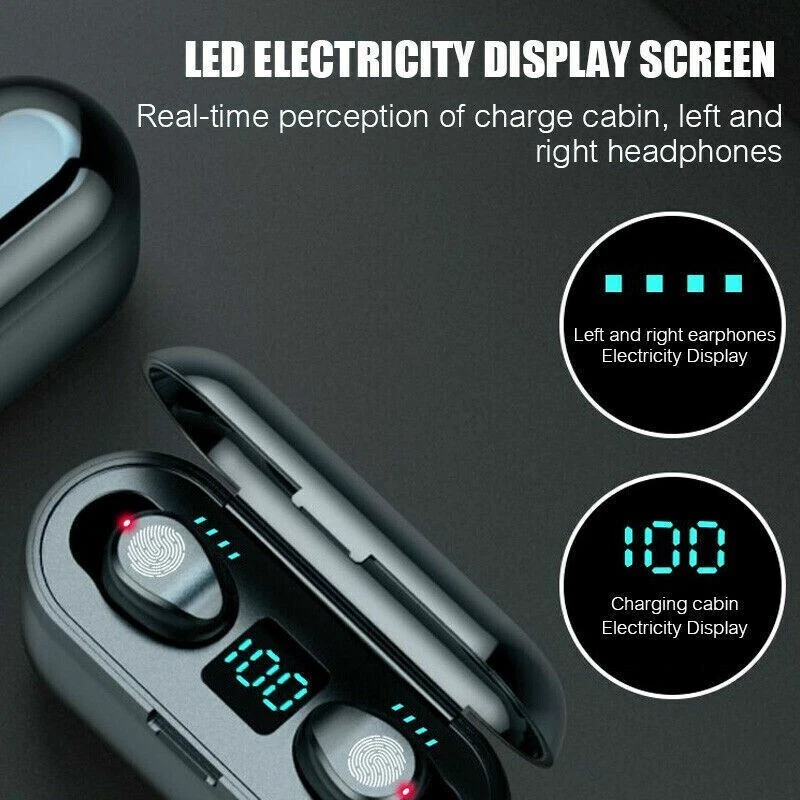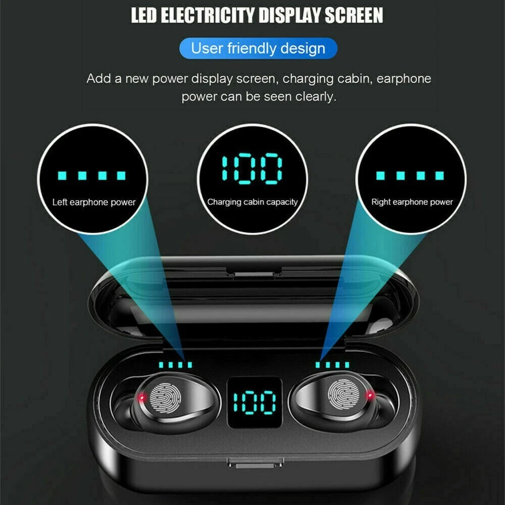 TWS Bluetooth headphone Wireless Earbuds Sporting Headset Premium Sound W/ Mic 【 Individual power display of and charging case】 : Intelligent LED display shows how much battery remain for the charging base and both . 【 Up to 90 hours play time, charge as you go】 :can play for 4 hours on a single charge. The built-in 2000mAh rechargeable battery charging case provides 90 hours of additional playback time. Lots of music enjoyment without worrying about battery life. 【Latest Bluetooth 5.1 technology, one-step pairing】 : Ensure your great experience with fast, stable and efficient transmission. 【Snug fit】 : Ergonomic designed to fit comfortably in your ears for active lifestyle,the Stereo headphones come with three adjustable ear cup sizes right from the box, you can focus on reaching new heights in your workouts. 【IPX6 waterproof】 : These true wireless headphone against damage from sweat or rain. Perfect for fitness travelling and etc. Note: the charging case is not waterproof. Lifetime warranty, If you are not satisfied with your purchase for any reasons, Please feel free to contact us at any time. Specification: Item Type: Wireless Earphones Bluetooth Version: 5.1 Support Protocol: A2DP, AVRCP, HFP, HSP, SPP Headphone Speaker: Φ8mm Headphone Battery Capacity: 50MAH Storage Box Battery Capacity: 2000MAH Transmission Distance: >10m Talk Time: 4-5 Hours Play Time: 4-5 Hours Headphone Charging Time: 1 Hour Charging Time Of Storage Box: 2 Hours Color: Black Package List: 1 * Earphones 1 * Charging Case 1 * Charging Cable 2 * Extra Rubber Earpieces 1 * User Manual On Nov 13, 2024 at 04:30:26 PST, seller added the following information: