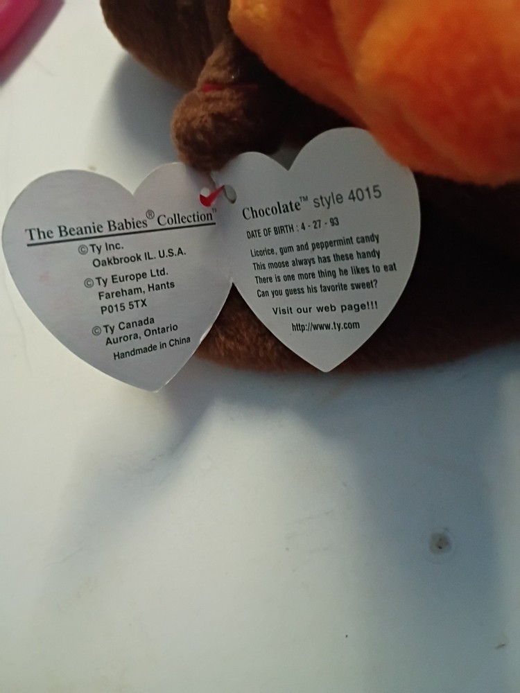 The TY Beanie Baby Chocolate The Moose with Tags from 1993 is a rare and retired collectible toy by Ty. This plush moose is part of the Beanie Babies character family and is recommended for children aged 3 and up. Made in China, this vintage Beanie Baby is a sought-after item for collectors of all ages, with its original tags adding to its allure and value.