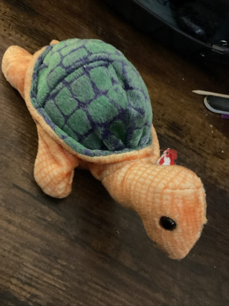 Meet PEEKABOO the Turtle, a charming addition to any Beanie Baby collection. This delightful 6.5-inch plush toy, crafted by the renowned brand Ty, embodies the whimsy and joy of the beloved Beanie Baby series. Released in the year 2000, PEEKABOO boasts the classic design and quality that fans and collectors have cherished over the years. With its soft, textured shell and endearing expression, PEEKABOO is an adorable representative of the Character Family, Beanie Baby. Ideal for gifting or as a treasured keepsake, this turtle will bring a touch of nostalgia and warmth to any setting. Embrace the charm of a Ty Beanie Baby and let PEEKABOO's friendly spirit brighten your day.