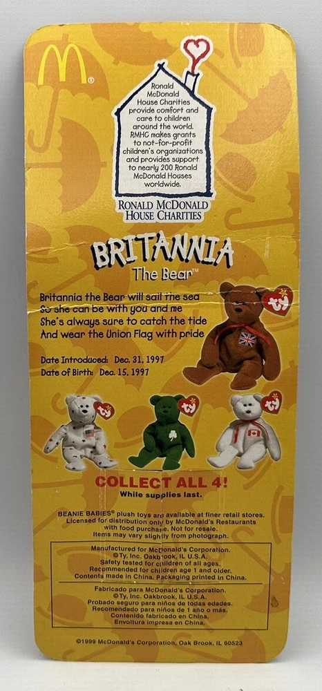 TY Britannia The Bear McDonald House Beanie Baby 1993 Rare Tag Vintage