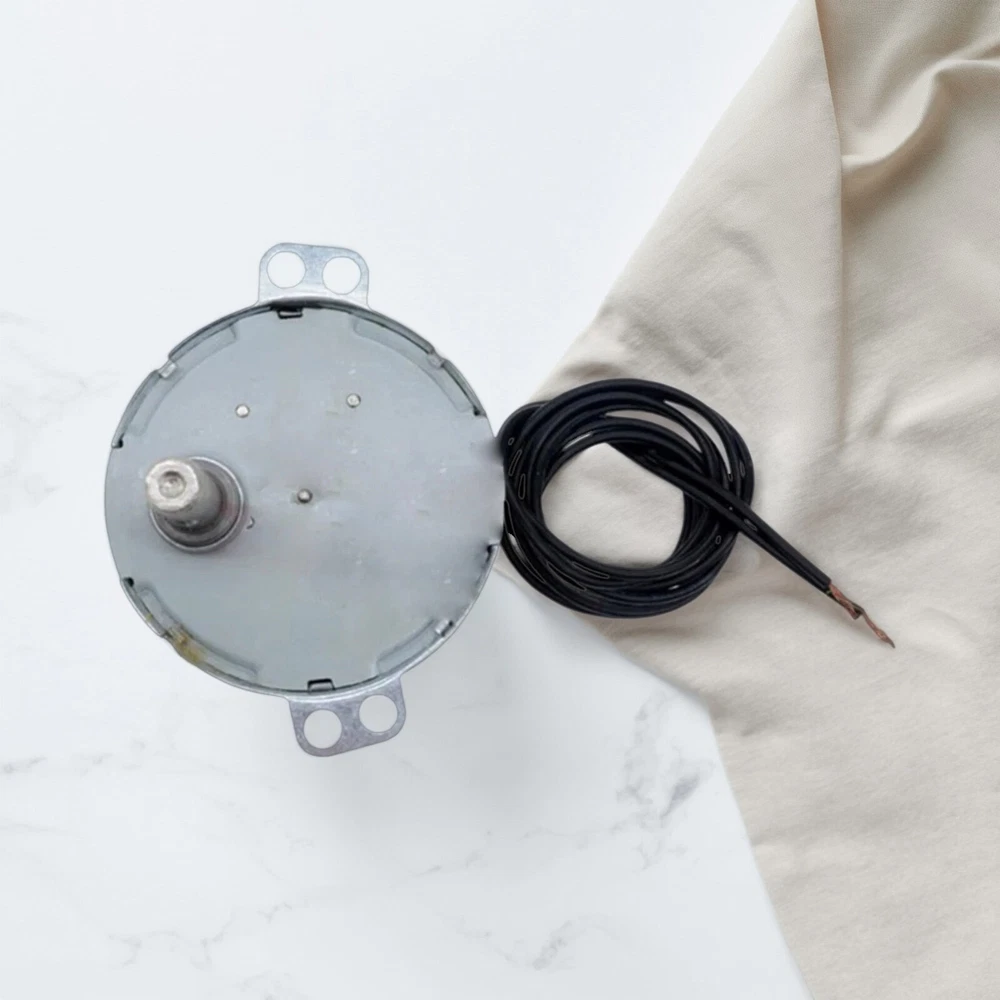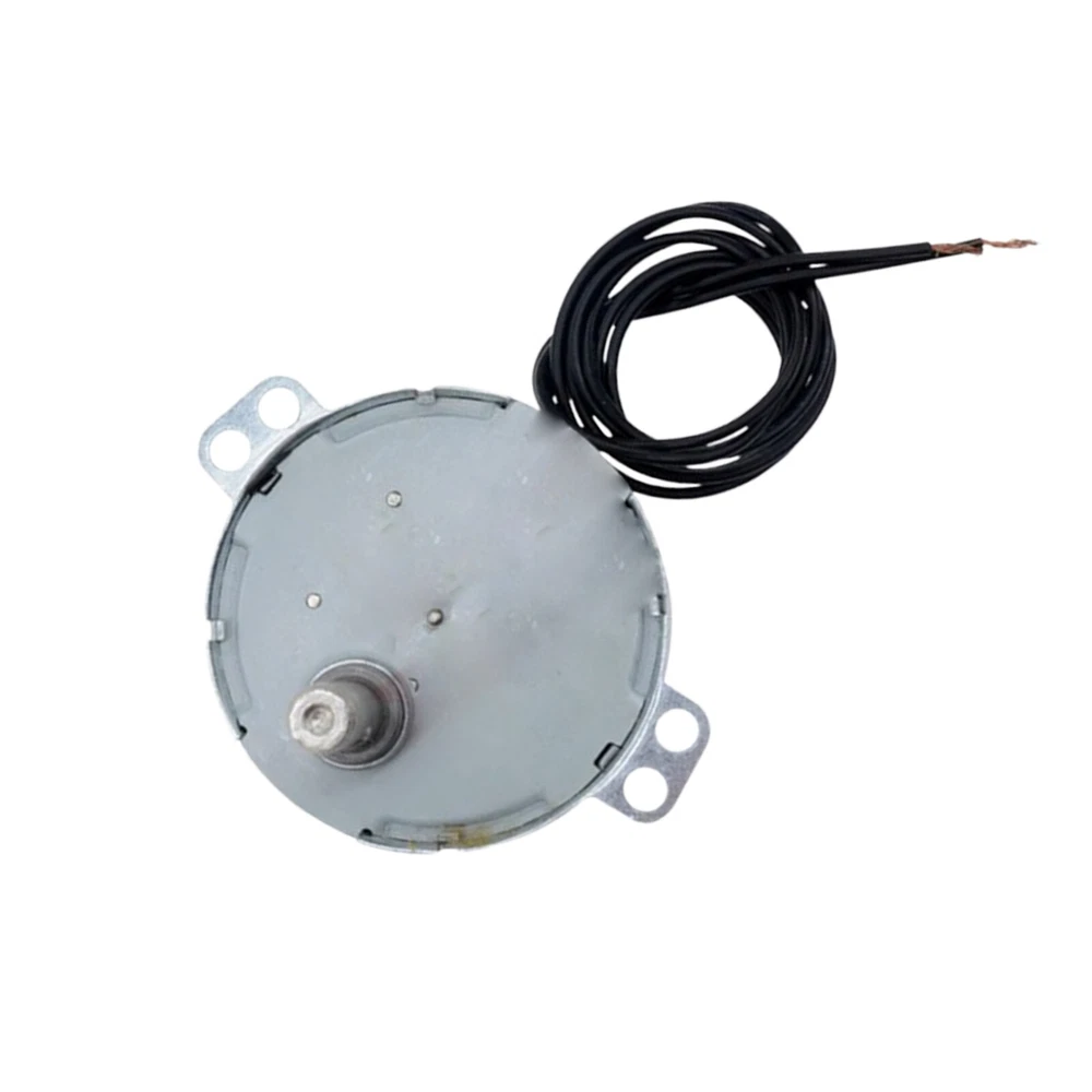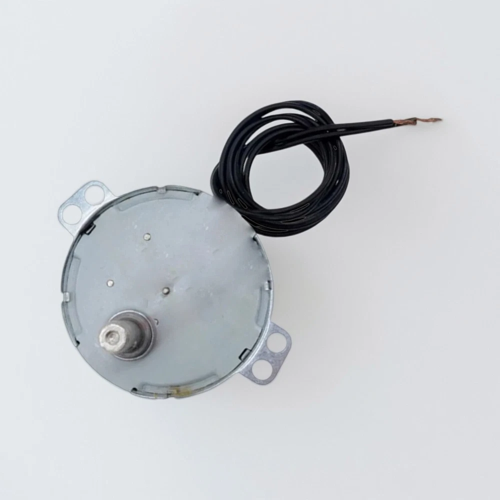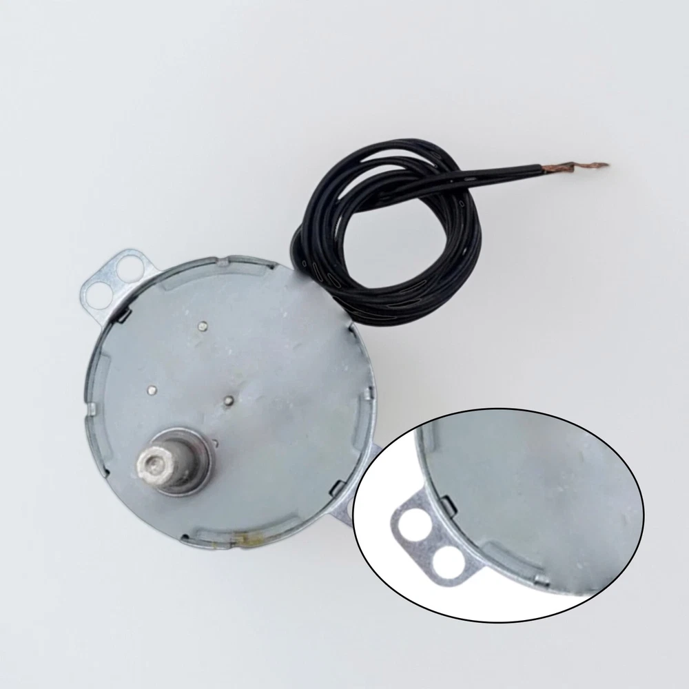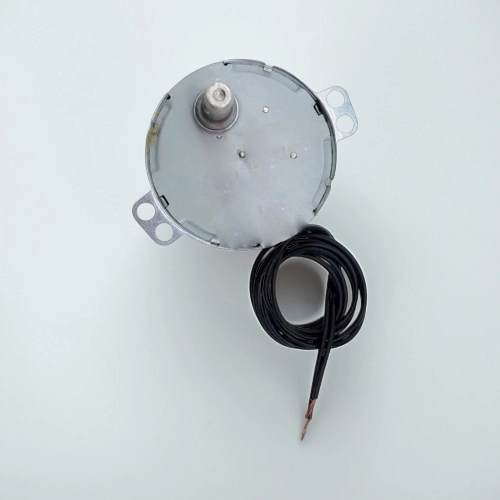 Description It is mainly used for Christmas tree, air conditioner, electric fan, microwave oven, heater, turntable, and anything else you want. Specification Rated Voltage: AC 220-240V Power: 4W Manner of Working: CW/CCW Rated Frequency: 50-60Hz Rated Speed: 4-5RPM Torque: 6 kgf.cm Body Diameter: 50mm/ 1.96 inch Body Height: 20mm/ 0.78 inch Total Length: 65mm/ 2.55 inch Mounting Hole Diameter: 4.5mm/ 0.17 inch Shaft Diameter: 7mm/ 0.28 inch Shaft Length: 16mm/ 0.63 inch Wire Length: 40cm/ 15.7 inch Package: 1 x AC Synchronous Motor