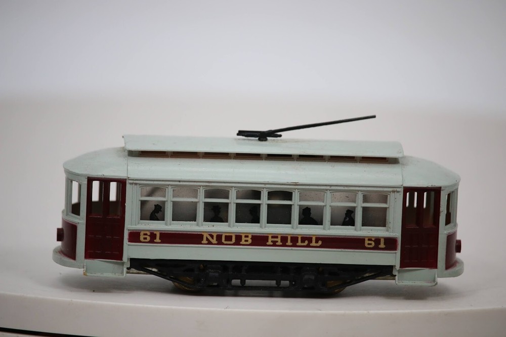 TYCO HO NOB HILL NO.61 Trolley Car for Parts/Repair SKU#009976 PLEASE READ BEFORE PURCHASING Condition: Please review all photos carefully for details on the item's condition. Photos are part of the description, and any notable flaws will be highlighted. Combined Shipping: If purchasing multiple items, request a revised invoice before paying to ensure accurate combined shipping costs. eBay's system may not calculate this correctly, leading to overcharges. Lighting Disclaimer: Photos are taken under bright lighting to highlight details, which may cause slight variations in color or hue depending on your lighting. If you need additional photos (e.g., in natural light) or more details, please ask before purchasing. As-Is Items: Items come AS-IS. The way they appear in our pictures is how the Item will arrive to you. What's Included: Only the items shown in the photos and described in the listing are included in the purchase. We strive to describe items thoroughly and provide clear photos. If you have any questions or concerns not addressed in the listing, feel free to ask before purchasing. Thank you for shopping with us!