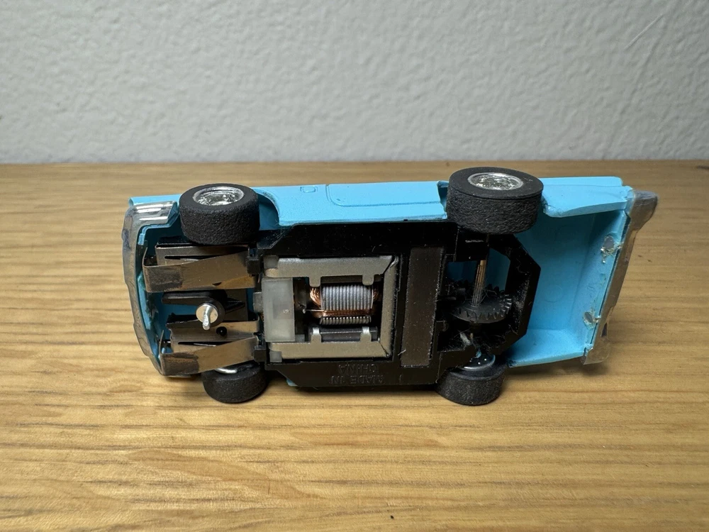 The product is a TYCO HO scale slot car featuring a '57 Ford Thunderbird in blue and white. It is an original piece from the 1970s or later.