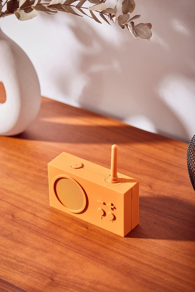 A POWERFUL DESIGN THAT EVOKES NOSTALGIA: Our award-winning radio is an iconic design that’s adapted with the times while staying true to what’s important. Tykho’s retro shape is reminiscent of the staple AM/FM radios that stood in our parents’ kitchens, but with a contemporary twist. We’ve given the classic bestseller a modern Bluetooth upgrade complete with a 3W speaker. A REPUTATION THAT WITHSTANDS TIME: Created more than 20 years ago, Tykho is the first design object ever featured on the cover of Time Magazine, becoming the flagship of French design, and a proudly iconic product of . RADIO & BLUETOOTH THE BEST OF BOTH WORLDS: Enjoy the radio by pressing the FM button, and using the antenna to dial into your favourite station. If a playlist is more to your liking, simply switch over to the Bluetooth function by pressing the Bluetooth symbol and connecting your device. WATER-RESISTANT: Thanks to its splash-proof rubber finish Tykho 3 is the perfect companion for poolside lounging, listening to music while doing the dishes, or to have in the bathroom with you while getting ready. KEEP IT GOING FOR 20H: Enjoy up to 20 hours of continued playtime. Tykho 3 is also easily rechargeable via the provided Micro-USB cable.A MUST HAVE FOR ANY SPACE: Revive any space with this portable, rechargeable, fresh take on a classic design. With Tykho’s modern rubber finish and 9 color range, it’s certain to compliment wherever you take it. Our Award-Winning Tykho is an iconic retro radio design that’s adapted from the AM/FM kitchen radio with a contemporary twist. It has since became one of our bestsellers worldwide. A Radio with Bluetooth speakers for home : Press the FM button and use the antenna to dial into your favorite station. Switch over to the Bluetooth, if a playlist is more to your liking. A Splash-Proof Rubber Finish: Tykho 3 is the perfect companion for outdoor and poolside lounging, listening to music while doing the dishes, or to have in the bathroom with you while getting ready. Portable radio with battery AND AC powered: wireless, enjoy the show for 20 hours. Tykho 3 is also easily rechargeable via the provided Micro-USB cable. One of the FM radios with the best reception, this small transistor will become a loud speaker with stereo sound on demand. Compact and lightweight, let's enjoy the music on the go with style.