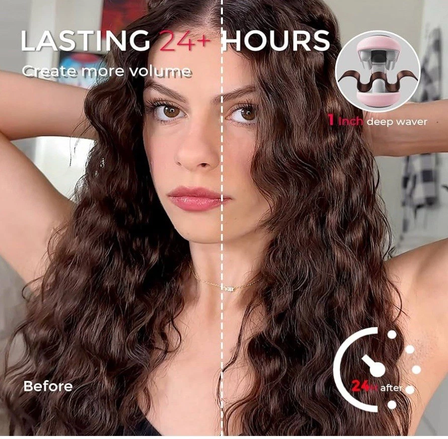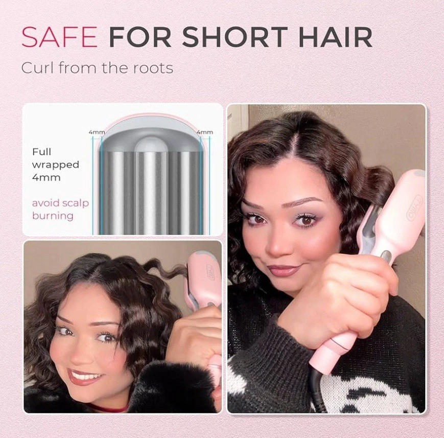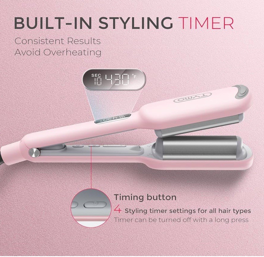 EASY CLAMP, INSTANT WAVE: Say goodbye to hours of practice and hello to stunning daily beachy waves with just one clamp. Your hair transformation journey begins now! NO EXPOSED BARREL, NO BURNS: Embrace the full-wrap insulation design of our TYMO wave curler, diligently safeguarding your fingers and neck from burns while effortlessly creating mesmerizing mermaid waves. Dive into a worry-free, enchanting hair curler experience today! VOLUMINOUS ALL DAY: The upgraded 1-inch roller size makes the curling iron lighter and smaller, easier to use, and easy to create voluminous hairstyles. Advanced dual-sided heating technology ensures waves that retain their shape and endurance for an extended period. FAST & STABLE HEATING: Equipped with 4 built-in PTC heating elements, heat 4 times faster within 30 seconds. The PTC temperature control system ensures precise and consistent heating, protecting your hair from overhead damage. DAMAGE WORRY-FREE: With 40 million negative ions help neutralize static, leaving waves silky and free from flyaways. Combo patented T-GLOSS tourmaline ceramic coating infused with nourishing essence ensures each wave is treated & healthy.