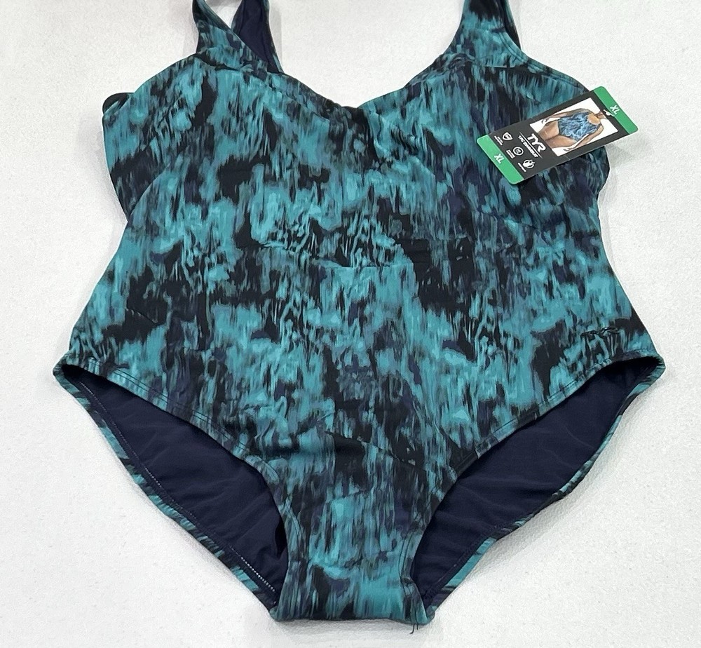 TYR Women's One-Piece Swimsuit Size: X-Large Color: Green Content: Body: 82% Recycled Nylon, 18% Spandex Lining 1: 92% Polyester / 8% Spandex Lining 2: 80% Nylon / 20% Spandex Cups: 100% Polyester