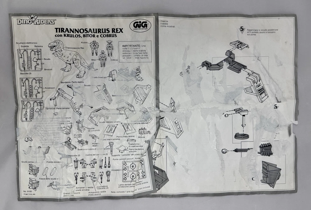 TYRANNOSAURUS REX DINO RIDERS KRULOS BITOR COBRUS T REX ITALIAN BOX 88 TYCO GIG Personaggio usato con scatola, scatola con segni di usura, macchie, strappi e pieghe. Aperta dai due lati. No polistirolo interno. Istruzioni molto danneggiate e con pagine attaccate tra loro. Personaggio in ottime condizioni. Funzionante. Completo degli accessori visibili in foto. Plastica ingiallita in alcuni punti e con alcuni segni di stress. Presenti i tre piloti con i loro accessori sulla sprue. Articolo per collezionisti adulti. Fare riferimento alle immagini, chiedere per ulteriori informazioni. Per spedizioni internazionali e fuori dall’Italia, prima di acquistare, si prega di contattarci prima al fine di stabilire con precisione l’importo. Spedizione combinata per l’acquisto di più oggetti. Spedizione tracciata. Ti ringraziamo per averci scelto. Ti informiamo che i tempi di consegna sono indicativi e possono variare a seconda delle condizioni di spedizione. Se non hai ricevuto il tuo oggetto entro il termine previsto, ti invitiamo a contattarci prima di aprire una controversia. Saremo lieti di assisterti e di trovare una soluzione soddisfacente per entrambi. Ti chiediamo gentilmente di attendere la nostra risposta prima di procedere con eventuali reclami. La tua soddisfazione è la nostra priorità. Gentile cliente, si prega di notare che ogni articolo disponibile nel nostro negozio è dotato di un esclusivo sistema di identificazione invisibile. Questo ci permette di verificare l'autenticità degli oggetti in caso di reso. Qualsiasi incongruenza tra l'oggetto venduto e quello restituito sarà prontamente rilevata e segnalata. Vi ringraziamo per la vostra cortese attenzione e collaborazione. Gli oggetti alimentati a batteria vengono forniti senza batteria. Se il pagamento non viene effettuato entro 4 giorni dall'acquisto, l'oggetto sarà rimesso automaticamente in vendita e la vendita sarà annullata. TYRANNOSAURUS REX DINO RIDERS KRULOS BITOR COBRUS T REX ITALIAN BOX 88 TYCO GIG Used figure with box, box with signs of wear, stains, tears and creases. Opened from both sides. No styrofoam inside. Instructions very damaged and with pages stuck together. Figure in very good condition. Working. Complete with accessories visible in photos. Plastic yellowed in places and with some stress marks. Present are the three pilots with their accessories on the sprue. Item for adult collectors. Please refer to pictures, ask for further information. For international and out of Italy shipment please contact us before to buy in order to define exactly the costs. Combined shipping for the purchase of several items. Tracked shipping. Thank you for choosing us. Please note that delivery times may vary depending on shipping conditions. If you have not received your item by the deadline, please contact us before opening a dispute. We will be happy to assist you and find a mutually satisfactory solution. We kindly ask you to wait for our reply before proceeding with any complaints. Your satisfaction is our priority. Dear customer, please note that every item available in our shop is tagged with an exclusive invisible identification system. This allows us to verify the authenticity of the items in the event of a return. Any discrepancies between the item sold and the item returned will be promptly detected and reported. We thank you for your attention and cooperation. Battery-powered devices are supplied without batteries. If payment is not made within 4 days since purchase, the item will be automatically relisted for sale and the transaction will be canceled. Il nostro negozio si trova in Italia (Unione Europea). Eventuali dazi doganali o tasse di importazione non sono inclusi nel prezzo e sono a carico dell?acquirente, secondo le normative del Paese di destinazione. "Our store is located in Italy (European Union). Import duties, taxes, and customs charges are not included in the item price or shipping cost. These costs are the buyer?s responsibility according to the regulations of the destination country.