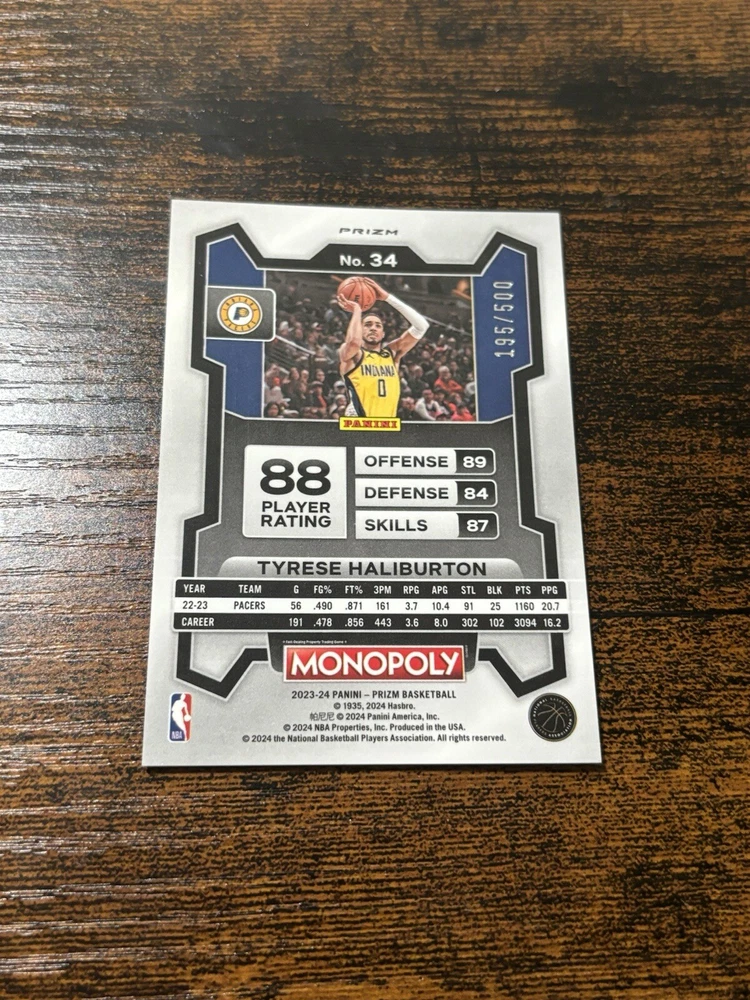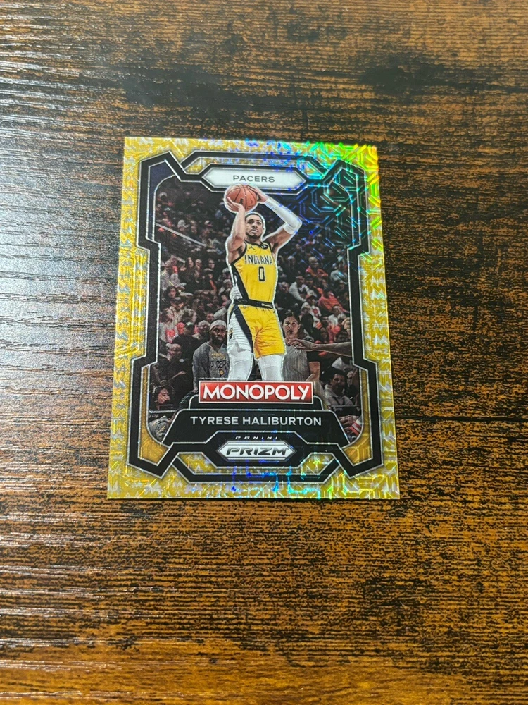 TYRESE HALIBURTON 2023-24 Prizm Monopoly #34 GOLD SHIMMER /500 Indiana Pacers What you see in the pics is what you are receiving. I try my best to provide the clearest pictures possible, but assume when buying that not every card will gem. Please review pics for surface. I will not be reliable for cards that do not gem, assume every card is an 8 or better unless listed otherwise or already graded. If you have questions, feel free to shoot me a message! Thanks for looking and make sure to check out the rest of my store!