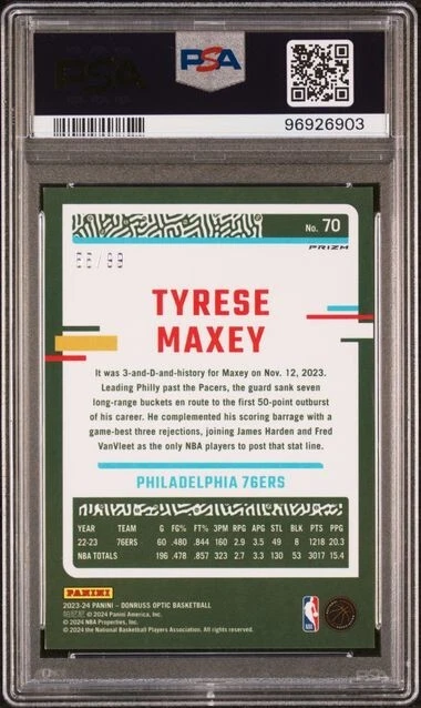TYRESE MAXEY 2023 DONRUSS OPTIC #70 RED /99 PSA 9
