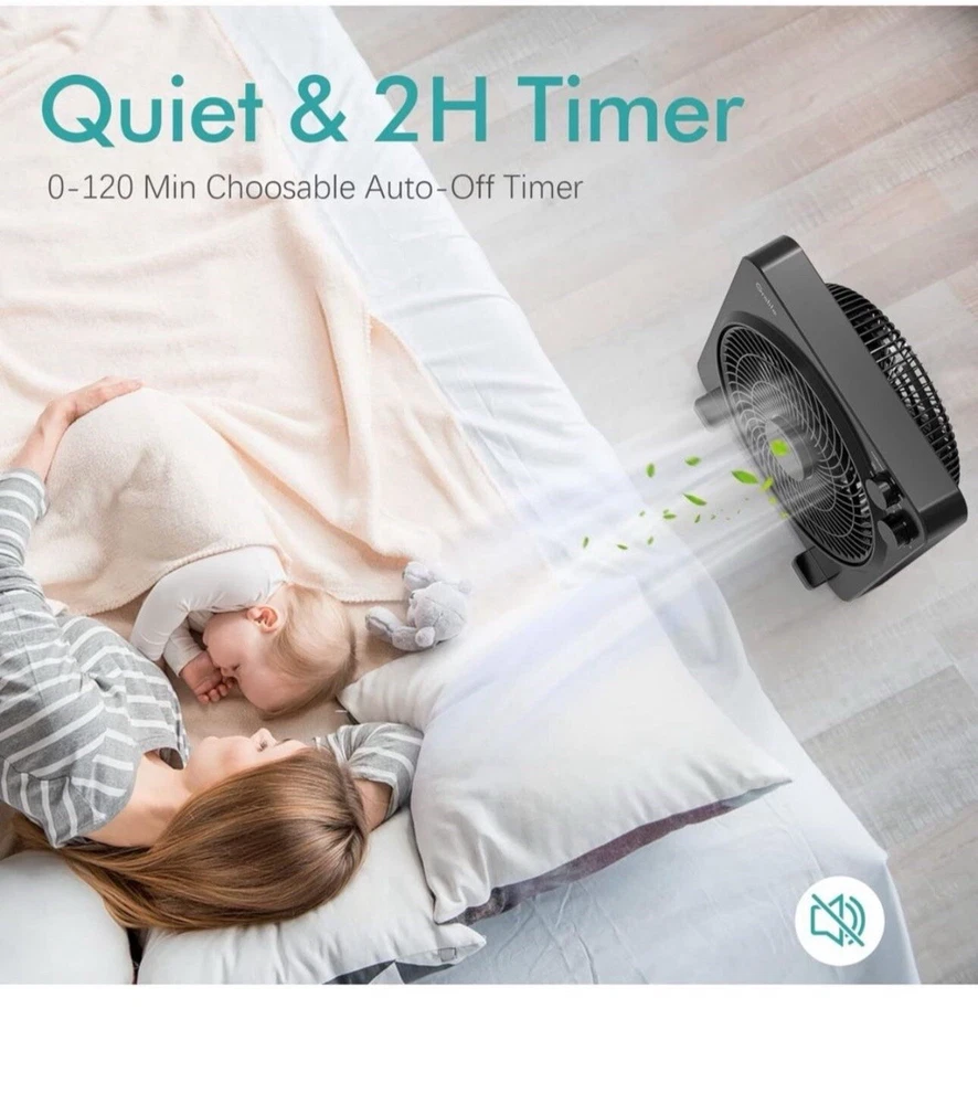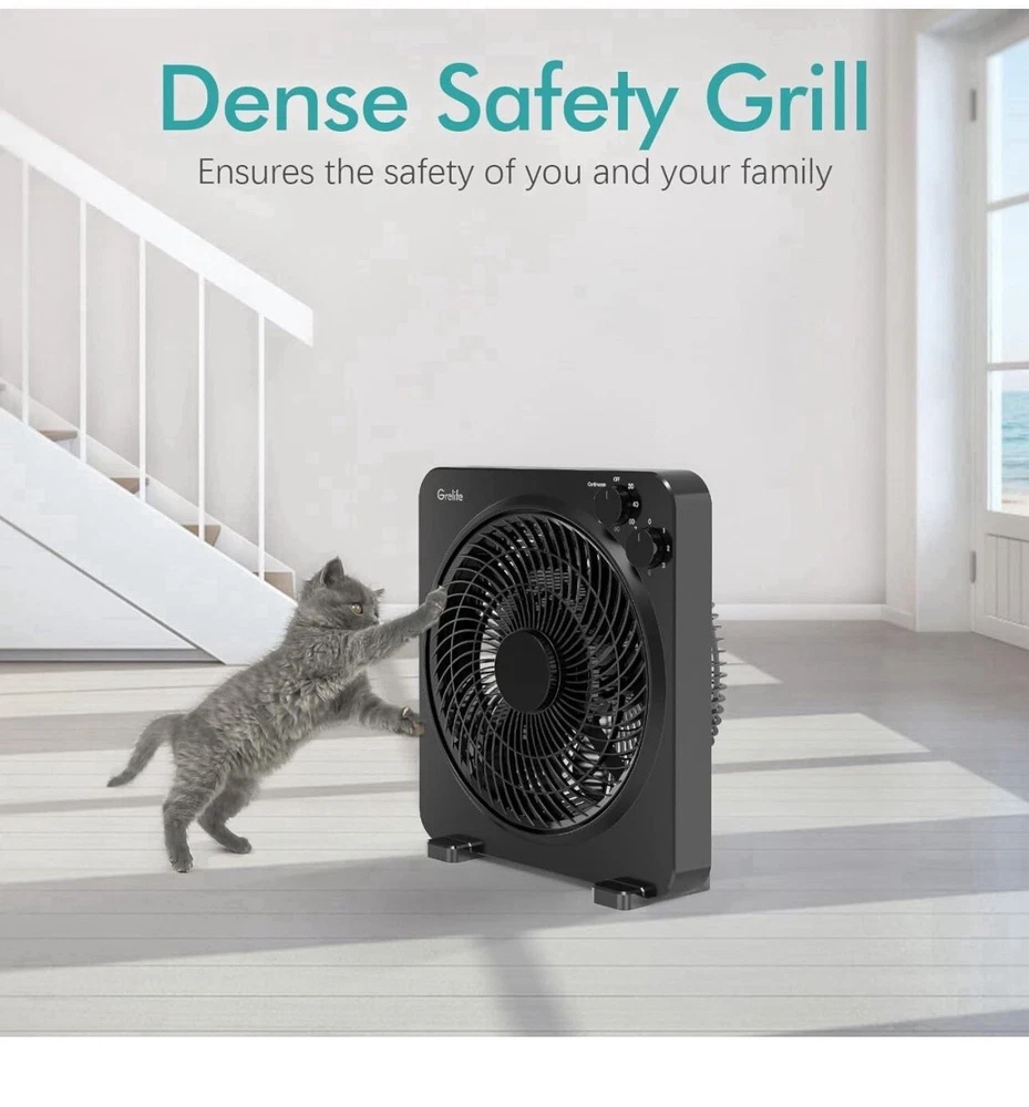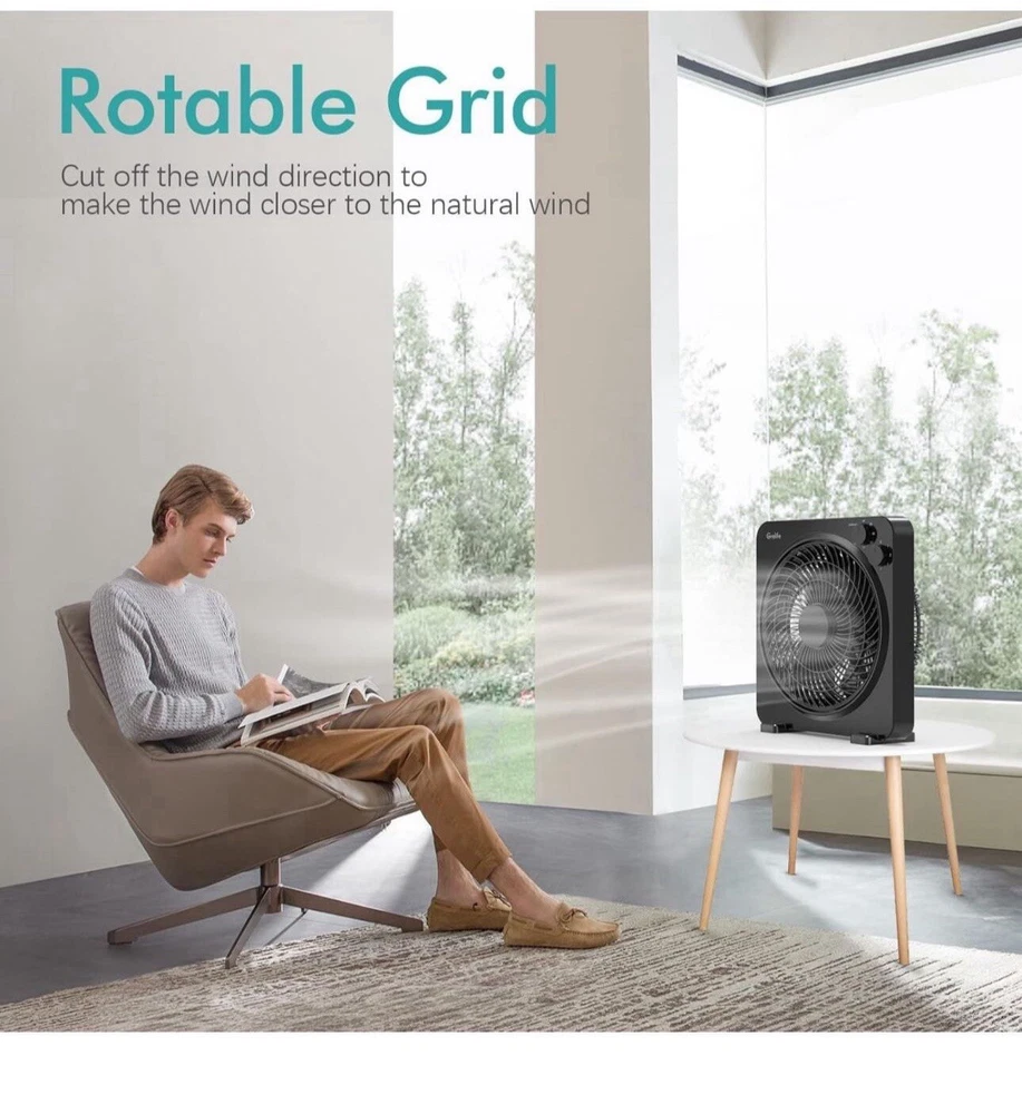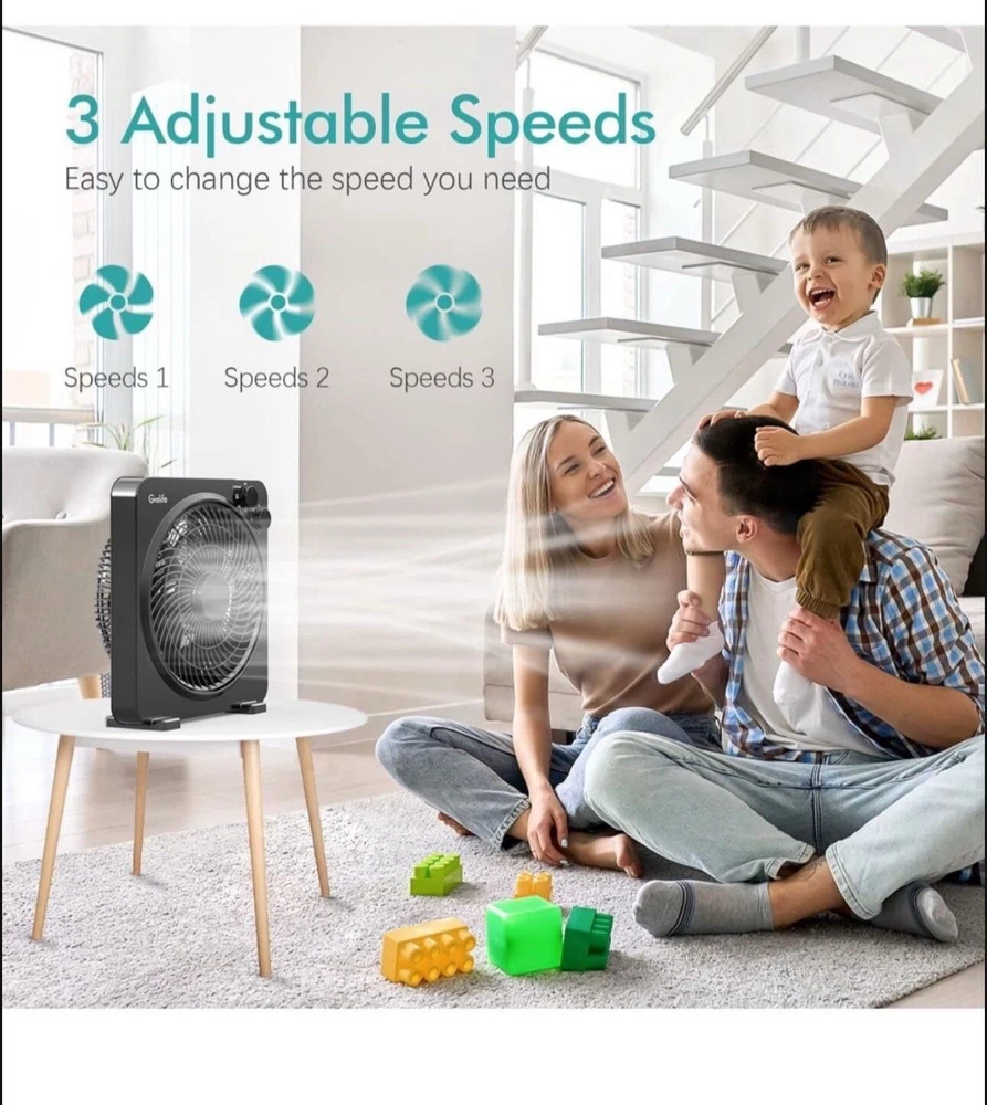 Table Fan, 14" Box Fan with 3 Adjustable Speeds, Quiet Running, Fast Cooling