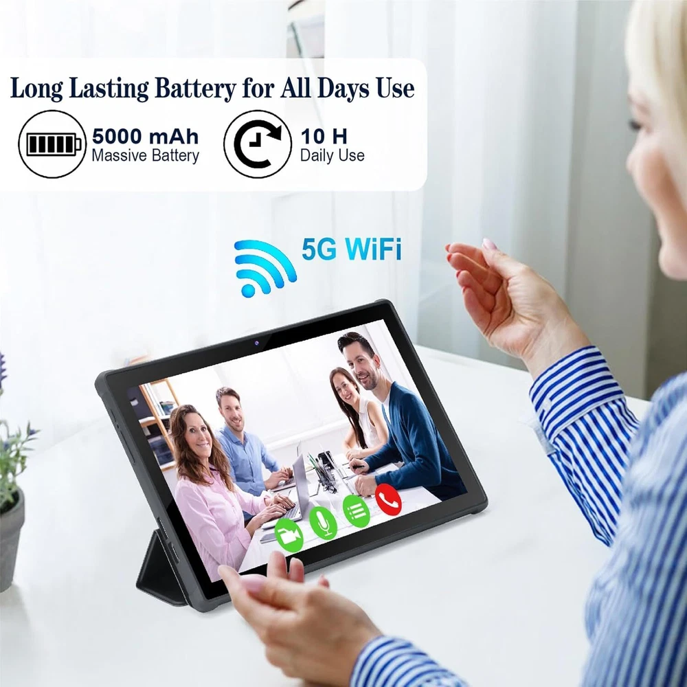 Tablet 10.1 inch Android Tablet 13 2024 Octa-Core Processor Tablet, 8GB(4+4Expension) 64GB Storage 512GB Expand, 5GWiFi & Bluetooth 5.0, Drop-Proof Case, Dual Camera, Long Life Battery, GMS Tablet Product Details Brand: Trayoo Model Name: K13 Memory Storage Capacity: 64 GB Screen Size: 10.1 Inches Display Resolution Maximum: 1280*800 Pixels 【2024 New Upgraded Powerful Tablet】The android 13 Tablet is equipped with a latest 2.0 GHz octa-core CPU that performs 30% FASTER than other brands, provide fast application launch and smooth gaming experience, Split screen feature allows you to take notes and watch videos at the same time, GMS Certified android tablet allow you to download many popluar apps from Google Play Store easily, Perfect for working, reading, studying and entertainment 【Stayed Connected with 5G WiFi & Bluetooth 5.0】Trayoo 10 inch tablet use newest 5G WiFi technology, delivering high-speed and stable network connections, you can use the android tablet 10 inch smoothly anywhere. Bluetooth 5.0, provides faster transfer speeds, your photos, videos, and music transfer become easier and faster 【Up to 580GB Storage & 5000mAh Long Battery Life 】The android 13 tablet comes with (4+4Expansion)GB RAM, 64 GB ROM and can up to 512GB of expandable microSD card storage for even more space. This 10 inch tablet android contains 5000mhA battery supporting about 10hrs of continuous use, Providing a long-lasting reading and watching times, Nice android tablets for business trip or travel use 【Dual Speakers & Camera】The tablet android features with dual speakers and powerful audio, the tablet's stereo effect allows you to be completly immersed while playing a game or watching a TV movie, bring you better entertainment experience. With front-facing 2.0 MP and Rear 5.0 MP dual cameras, convenient for capturing beauty in different directions and sharing great monment with friends and family 【Tablets with Protector Case】The Android Tablets comes with a drop-proof protector case, so you don't have to spend money looking for a case for your tablet 10 inch. Made of TPU material, protecting the tablet well from scratches, drops and shocks, Perfect Choice for Everyday Use