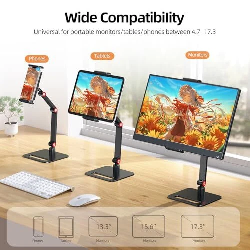 Return Policy Fast Delivery Trusted seller Tablet Stand for Desk, Adjustable 360° Swivel Bracket, 180° Tiltable Clamp, Adjustable Long Arm Foldable Tablet Holder with for 4.7-17.3'' iPhone/iPad/Tablet/Portable Monitor, Aluminum Alloy Product Description Universal Compatibility: This desktop tablet stand fits screens from 4.7" to 17.3", accommodating smartphones, e-readers, large tablets, and portable monitors with ease, ensuring versatile use Premium Stability: Made from durable aluminum alloy, this portable monitor stand with a maximum load-bearing capacity of 3kg , ensures your device remains securely in place without wobbling or slipping; Adjust to a stable angle for worry-free use Adjustable Design & Versatility: Featuring two adjustable long arms and a 360-degree rotation capability, our tablet stand offers unparalleled flexibility; Whether you're watching videos, reading e-books, or video conferencing, you can easily customize the angle and height to suit your preferences, enhancing your viewing experience in any scenario Rich Use Scenarios: From the home office to the kitchen to the bedroom, this tablet stand is designed to adapt to various use cases; Whether you're cooking up a storm while following a recipe, attending virtual meetings while working, or relaxing with hands-free entertainment, this stand provides a stable and convenient solution for all your needs Space-Saving & Easy Installation: Say goodbye to cluttered surfaces and tangled cords! Our foldable tablet stand features a widened base for enhanced stability while taking up minimal space on your desk or countertop; Plus, the hassle-free installation process ensures you can set it up in seconds, allowing you to enjoy its benefits without any delay Shipping Returns Payment Shipping Shipping is FREE to all addresses other than APO/PO boxes in the lower 48 states. All our stock ships from US-based warehouses. Shipped via USPS or UPS (depending on location and package weight) Unless stated otherwise, all orders will ship within 24-72 hours of your payment being processed. Check our feedback to see the great reviews of FAST shipping we offer. Returns Seller does not accept returns Payment We currently accept payment via eBay managed payments only. Once payment is cleared, we will dispatch your shipment within 1-3 business days. Please refer to the "Shipping" tab for more information regarding shipping speed to your destination.