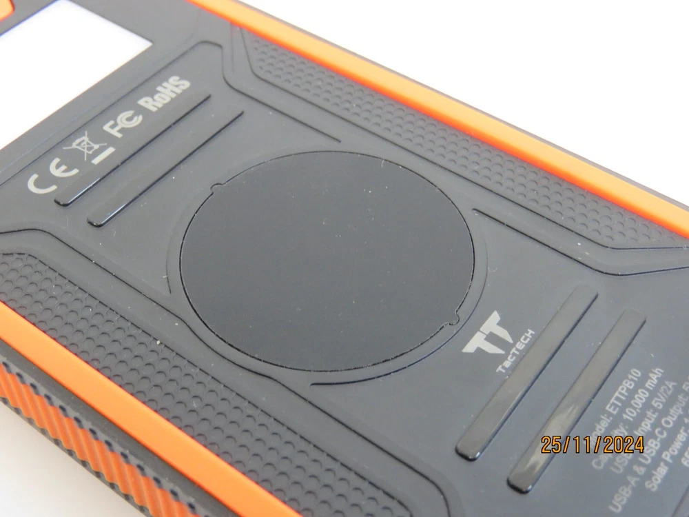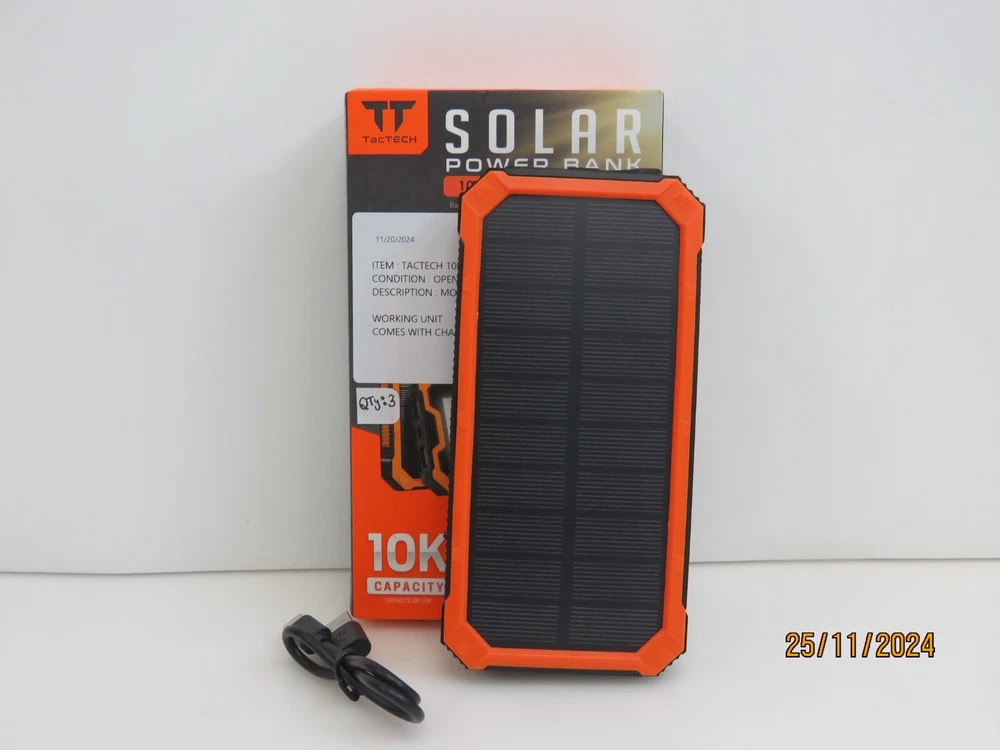 TacTech 10,000 mAh USB-A/USB-C Solar Power Bank + LED Flashlight ETTPB10 [C106] Functional Condition: Tested and Functional. Cosmetic Condition: New Open Box. Items included in this listing: Power Bank Charging Cable Items NOT included in this listing: N/A Thank you for Shopping with Us! ENJOY Free Shipping in USA & Low Cost Shipping to CANADA! Terms of Sale NOTE: Our Listings only include items as pictured - Please do not assume any item is included if its not pictured. We will try our best to picture all items included in this listing as well as its cosmetic condition. We Guarantee & Stand Behind our product and commitment to provide you with o nly Original, Branded, OEM & Genuine Products Shipping A complete and correct shipping address is essential. We cannot guarantee the shipping address can be changed after checkout. Sales Tax will be charged to all Canadian & USA Buyers. Combined shipping is not guaranteed. We are unable to change any content of your order based on the eBay checkout note or PayPal message. Customers with shipping addresses outside of the U.S.A and Canada are responsible for all duties and import taxes. Please contact your customs for information Bidding All items are accurately described and pictured. Please ensure you are consciously bidding on the items as described. Payment Payments are expected at the time of purchase or in case of Auctions, at the end of auctions. Payments are managed via eBay Managed Payments Contact Us Your positive feedbacks are extremely valuable to us. If you have any concerns about your order, please contact us through eBay message to resolve any issues before leaving a negative feedback or opening a dispute. We will reply within 24 Hours Return Policy All items are in used condition unless specified.