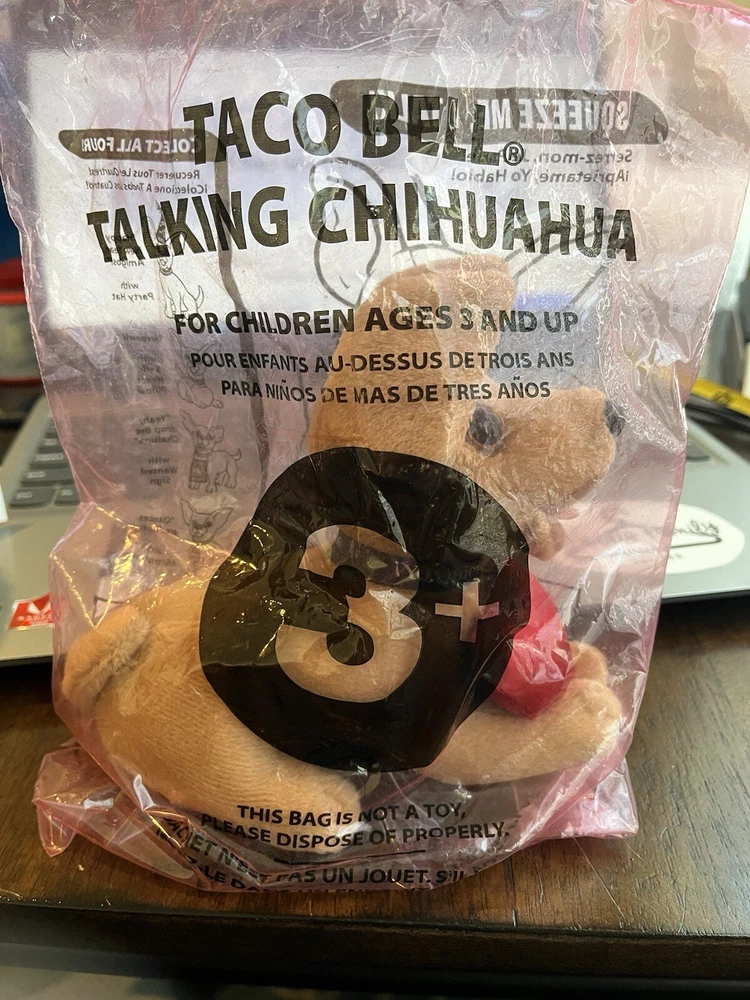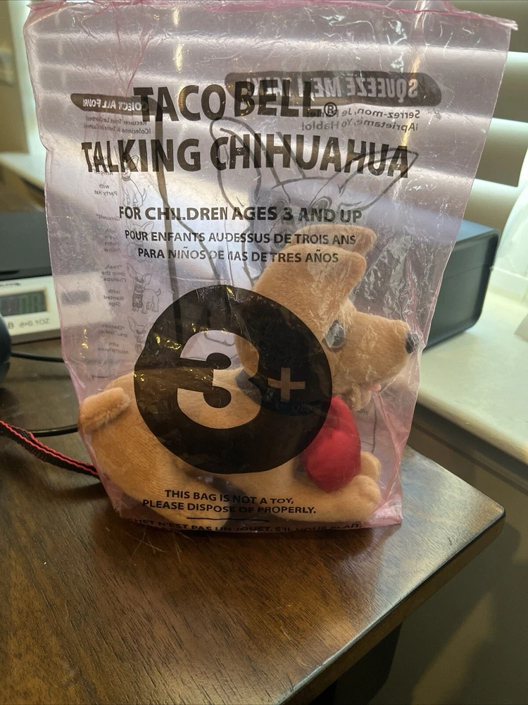 Taco Bell Talking Chihuahua Red Satin Heart Rolls Tongue Works In Packaging valentines