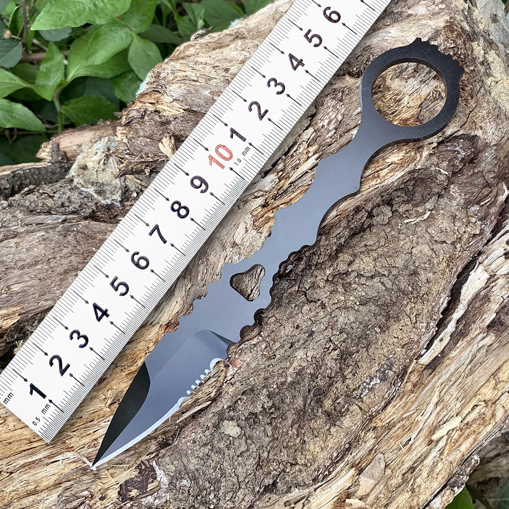 Hunting Survival Knife & Tactical Dagger Gross Weight: 73g Package Includes: 1 * Hunting Survival Knife & Tactical Dagger Hunting Survival Knife Selling Points Multi-Purpose Utility: Ideal for various survival tasks such as cutting game, skinning, wood shaving, opening cans, and food preparation, making it an essential tool for outdoor survival and hunting. Durable & Sturdy: Typically made from high-strength stainless steel, offering excellent toughness and corrosion resistance, ensuring it withstands heavy use without breaking or damage. Razor-Sharp Edge: The blade undergoes precise grinding and heat treatment, ensuring extreme sharpness and long-lasting edge retention, reducing the need for frequent sharpening in the wild. Ergonomic Design: The handle is designed for a comfortable grip, reducing hand fatigue. It also provides a secure hold even in wet or greasy conditions, enhancing safety during use. Trusted Brand: Well-known brands offer high-quality hunting survival knives with a solid reputation, giving users confidence that the knife will perform reliably in critical situations. Tactical Dagger Selling Points Portable & Lightweight: Compact and lightweight design makes it easy to carry in a pocket, backpack, or on a belt, ensuring quick accessibility in various tactical scenarios or daily activities. Concealability: Sleek and discreet design, often in muted colors, making it less noticeable—ideal for covert operations or as a backup weapon for unexpected situations. Quick Draw Capability: Comes with a specialized sheath that allows rapid deployment, enabling users to draw the dagger instantly during tactical engagements or emergency self-defense. Tactical Functionality: The blade is designed for combat applications, featuring a sharp tip for piercing and a strong edge for cutting, slashing, and close-quarters combat. Additional Features: Some tactical daggers include extra functions such as serrated edges for sawing, glass breakers for emergency escapes, or reinforced grips for added stability.