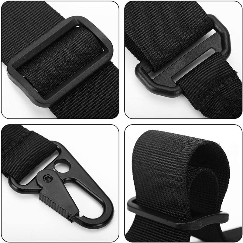 Feature Durable: Made of heavy-duty chafe resistant nylon webbing and high impact polymer composite parts, made it reliable performance. Adjustable length: No troublesome buckles, hooks or fasteners to scratch the rifle. Quickly change the length without disconnect the belt Wide shoulder strap design: Unique shoulder pad in the shoulder to protect your shoulder avoid friction and stay comfortable Easy to operate: Professional release clip, with military spec rotating head, not easy loose whether running or jumping, very easy to use The rifle sling can have other purposes, it can be used as Rifle Sling, Shoulder bag, Camera bags or even a safety rope. It is easy to carry. Specific ations Material: high density nylon Length: adjustable about 59in/150cm Width: 1.37in/3.5cm Color: Black Package includes: 1x Gun Sling (without Swivels)