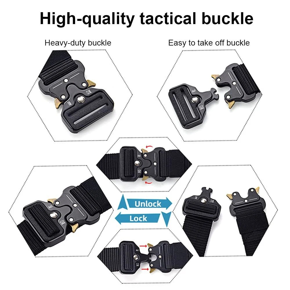 Product Name: Tactical Belt / Tactical Belt Military Belt Length: 125cm / 135cm (49.21 inch) Belt Width: 3.8cm (1.49 inch) Buckle Material: Metal Buckle Belt Material: Nylon Weight: about 0.25-0.5kg Color: Black, Brown, Blue, Green, Khaki Department Name: Adult Belt Material: Canvas Belt Material: Metal Gender: MEN Belt Width: 3.8cm Style: Casual Pattern Type: Solid Buckle Length: 6.8cm Model Number: Tactical BeltItem Type: Belt < br> Buckle Width: 5.2cm Buckle Material: Metal Alloy Military Tactical Belt: Police Belt Tactical Belt: Military Belt Army Belt: Nylon Belt Color: Black, Brown, Blue, Green, Khaki < br> Belt length: 125 cm / 135 cm Quick Release: It fits a waist size of 28-42 inches and is arbitrarily adjustable. tactical belt features a quick release buckle made of aluminum alloy, offering heavy-duty design and strong load-bearing capacity. Simply press the button on the buckle to quickly open, making it ideal for military, outdoor activities, or any scenario that requires rapid adjustment High-Quality Nylon: tactical belt is made of high-quality nylon, which is both durable and lightweight. It provides reliable support during work, outdoor adventures, and tactical operations. The nylon material is both soft and sturdy, ensuring comfort and stability during extensive movements Versatile Use: tactical belt is suitable for a wide range of applications, from military to everyday wear. It is ideal for work, outdoor adventures, hiking, climbing, and other activities. Its strong load-bearing capacity makes it perfect for carrying gear or tools Gift Packaging: tactical belt comes with an elegant gift box, making it perfect for gifting to family, friends, or colleagues. Whether it's for a birthday, holiday, or any other special occasion, this is a thoughtful gift. It's also a great choice for treating yourself Shopping : We provide you with a quality so that you can with confidence. Provide product quality . Comes with a gift box and is beautifully packaged. Trust the brand for your tactical belt needs