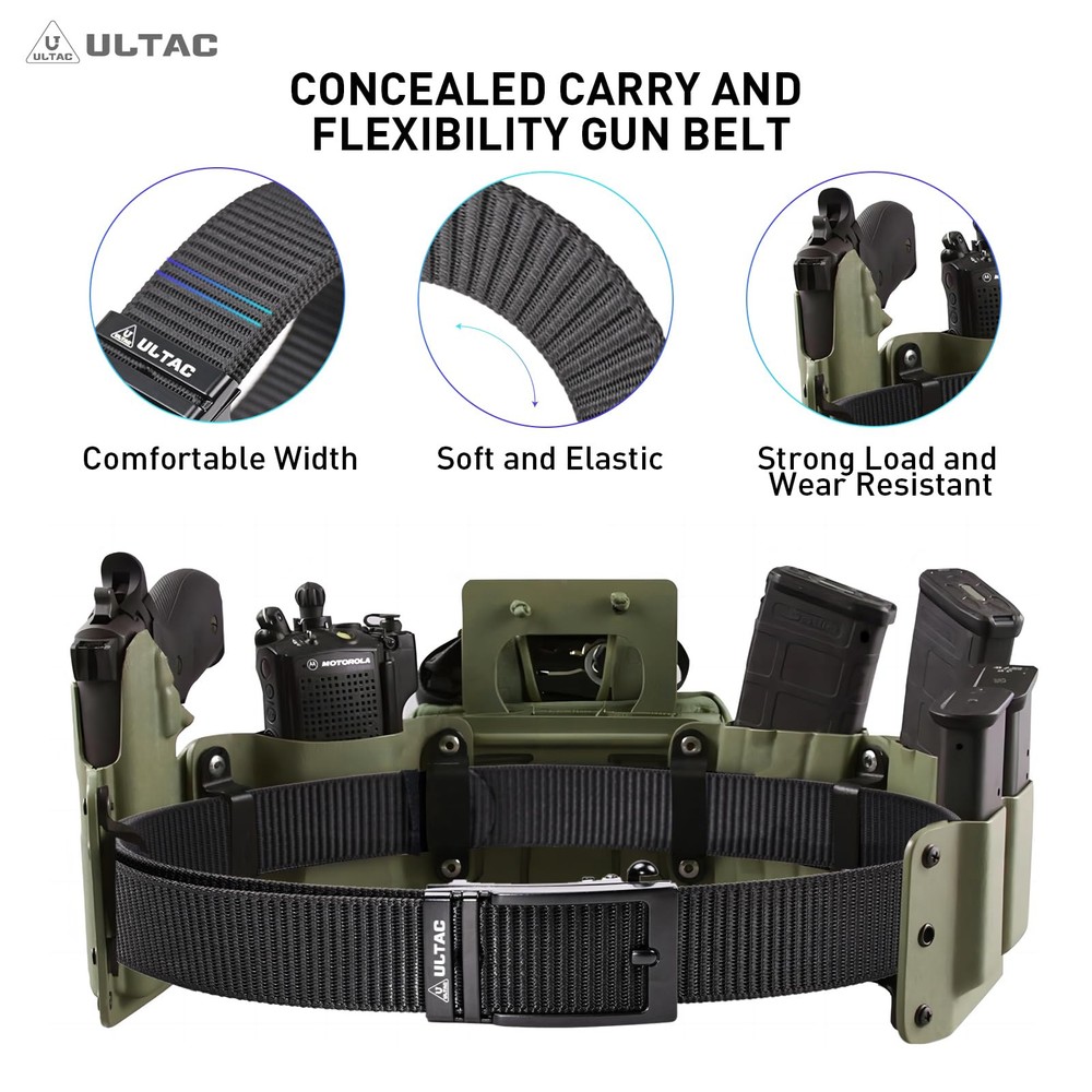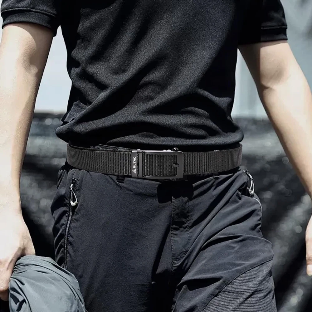 【Upgraded Buckle】Upgrade your dress up with our brand new combination of nylon webbing and automatic ratchet buckle, ensuring a secure and comfortable fit that won't slip or loosen. Our tactical belt men can be anti-rust, anti-corrosion and anti-scratch for its nylon application. 【High Strength Stiff Nylon Belt】Our nylon belt for men utilize the latest dense weaving process in order to adapt to dragging during high-intensity outdoor activities. In addition, the gun belts for men are made of high strength nylon fabric, which makes it hard to break while scratched. 【Suitable For Various Occasions】Our gun belts for men concealed carry holster is suitable for daily carry, width 1.19"fits most jeans, slacks, suit pants, work pants. And the edc belts for men can be used for camping, golfing, hiking, fishing, mountaineering, traveling, field training and other work and outdoor activities. 【Adjustable and EASY TO USE】Our utility belt men with no hole’s design enables you to fit your waist easily by just putting the webbing through the buckle and adjust. If you want to release, just push the trigger and pull the webbing out. 【Perfect Gift for Men】Our holster belt is enclosed in an elegant gift box for you giving whoever you love, or yourself. The ratchet belts for men have one years gurantee, if there are any problem please contact us and we will help you solve it within 24H.