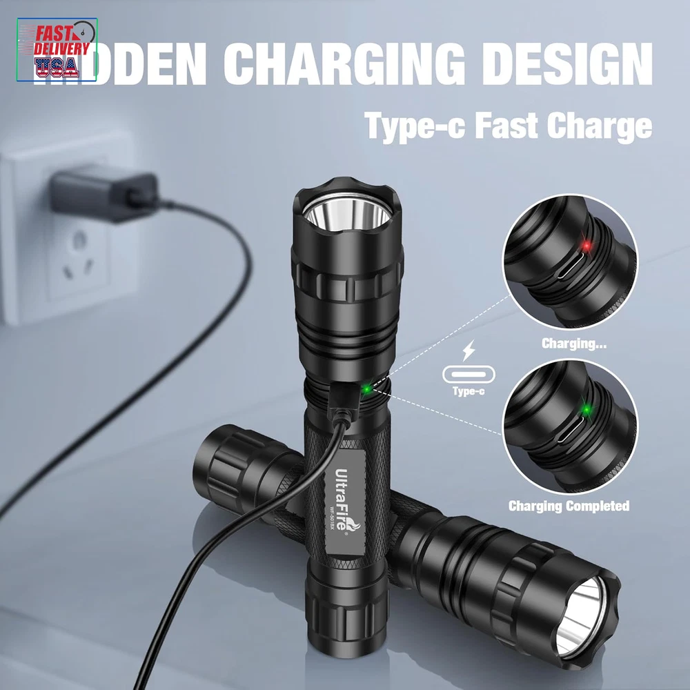 Store New Arrivals Add to Favorite View Feedback Contact Tactical Flashlight with Duty Belt Holster, 1000 Lumen Rechargeable Police Flashlight for Law Enforcement, 3-Mode Security LED Flashlight with Belt Holder WF-501BX Description Item model number WF-501B X Light Source Type LED Power Source Battery Powered Battery Cell Composition Lithium Ion Country of Origin China Warranty Type Lifetime Batteries Included? Yes Special Features High Power Batteries Required? Yes Product Dimensions 1.1"D x 0.9"W x 5.6"H Material Aluminum Number of Batteries 1 Lithium Ion batteries required. (included) Included Components Light kit inlcuded Item Package Quantity 1 White Brightness 1000 Lumens Brightness 1000 Lumen Water Resistance Level Water Resistant Item Weight 9.8 ounces Battery Description Lithium-Ion Runtime 100000 hours Special Feature High Power Part Number -WF-501B X Color Temperature 6500 Kelvin Color Matte Black Batteries 1 Lithium Ion batteries required. (included) Voltage 3.7 Volts SUPER BRIGHT: The UltraFire WF-501BX Tactical Flashlight delivers up to 1000 lumens of powerful brightness, reaching distances of nearly 820 feet (250 meters). Perfect for outdoor activities like hiking, camping, fishing, and running, as well as for power outages and emergency situations. 3 PRACTICAL LIGHT MODES: Say goodbye to endless mode cycling! This flashlight offers only the three most useful modes: High, Low, and Hidden Strobe(quickly double-click the switch button), minimizing the hassle of switching through unnecessary options. HIDDEN CHARGING DESIGN: The ULTRAFIRE WF-501BX comes with a built-in Type-C charging port (rotating flashlight head) and features an anti-reverse installation circuit for safe and reliable use. It also displays charging status: red while charging, and green when fully charged. STURDY PERFORMANCE: Crafted from aerospace-grade aluminum alloy, this flashlight is pressure-resistant, shockproof, and features wear-resistant anodizing. Its IP65 waterproof rating ensures reliable performance in extreme weather, including storms and heavy rain. MULTI-FUNCTION BELT HOLDER: UltraFire W66 flashlight holster is made of engineering plastics. Lightweight and convenient to carry. The holster can be rotated 360° and the flashlight can be fixed on belts, truly freeing your hands. Product Description ABOUT US We offer the best prices around on high quality products. Our E-store includes media such as books, movies, music and games while offering electronics, toys, sporting apparel, clothing, tools, general home, garden items and more. SHIPPING We are always working hard to ensure your package arrives as soon as possible. Please understand that some factors like weather, high postal traffic, and the performance of shipping companies are outside of our control. We offer free shipping to the lower 48 states and ship within 2 business days of payment, usually sooner. We do not accept P.O. Boxes. Please provide a physical address. For shipping outside of the continental USA, we only use eBay's Global Shipping Program.The item is shipped to KY and then sent to the rest of the world. International customers are responsible for all duties and taxes. Continue to check out in order to calculate costs for shipping the item to your country. Messages regarding eBay's Global Shipping Program MUST be directed at eBay EXCLUSIVELY. RETURNS We offer a 30-Day Return Policy on items which you are not completely satisfied with. You have the option for a full-refund or an exchange of the item. No returns are available on items shipped outside of the USA. PAYMENT We accept PayPal. CONTACT US This page content is yet to come Please ad us to your favorite seller and visit again later Thank You CUSTOMER SATISFACTION We try our very best to make sure every customer is completely satisfied. If there's a problem, message us! We're happy to help. WE ACCEPT Copyright © 2021 AutoDS. | All Rights Reserved
