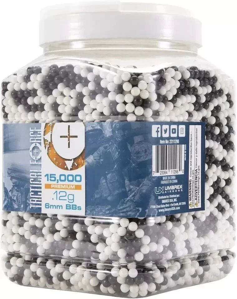 About this item 15,000 Premium Tactical Force Airsoft BBs Polished to perfection; Loads and shoots smoothly for airsoft guns Weight: 0.12 gram High quality airsoft BBs designed specifically for the most demanding and serious tactical scenarios 6mm plastic BBs compatible with most airsoft guns