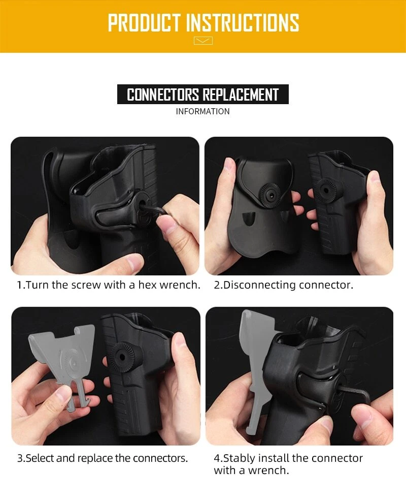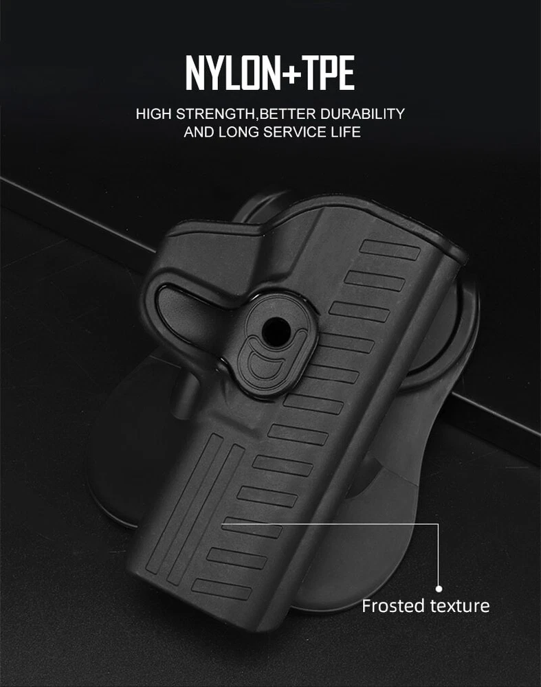 Material: Plastic+TPE Color available: Black, Gray,Olive,Dark Earth Version: for Right handed Weight:140g Size: 12*10.5cm Package: Holster*1 A simple,quick-draw paddle holster - No unnecessary features here, just a holster that gets the job done well. Comfort,safety and security - Enjoy the security you’ve been looking for with a reliable, compactly designed, and affordable paddle holster for all your pistols. Wear it anymore - Built to go to work, this tactical swivel holster is at home on the range, the woods, or the streets. Full-Grip Belt Clip, which are fully compatible and easy to add! For Right handed Compatible with:S&W M&P 9mm. GIRSAN MC 28 SA Simple and easy disassembly,and the replacement of connecting part is easy to operate 360 degree adjustment fo the connector