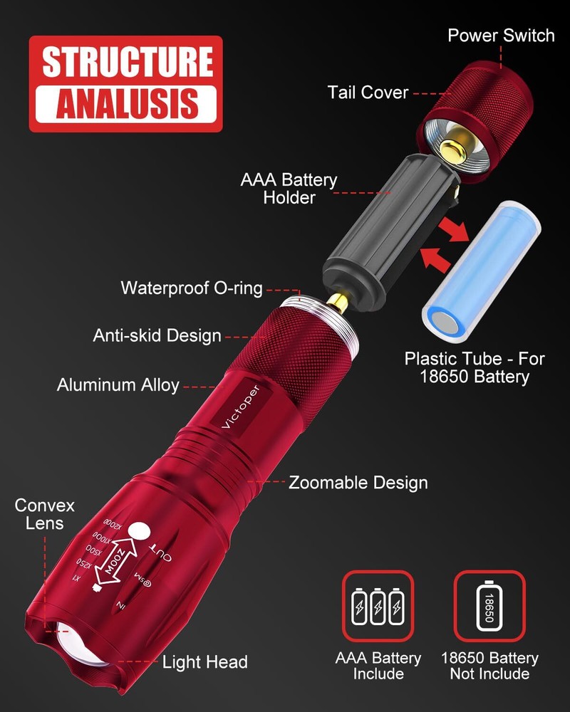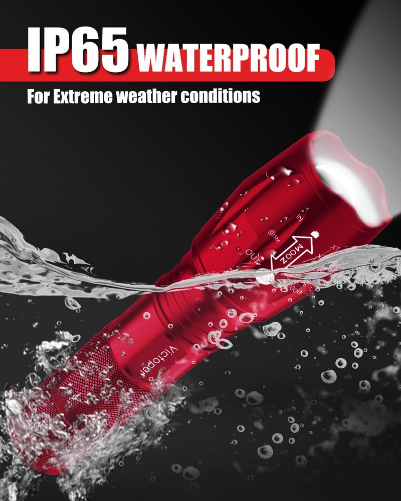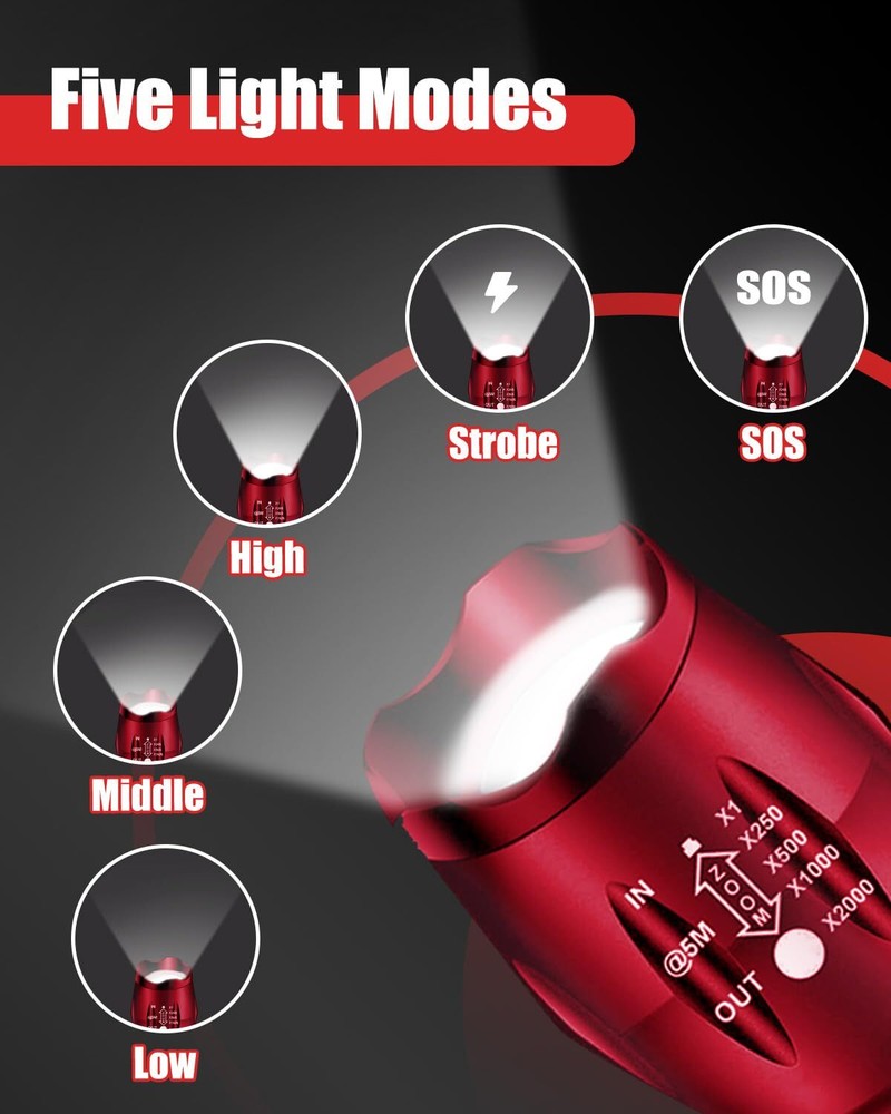 Tactical LED Flashlight 2 Pack 2000 Lumens Bright Red Light