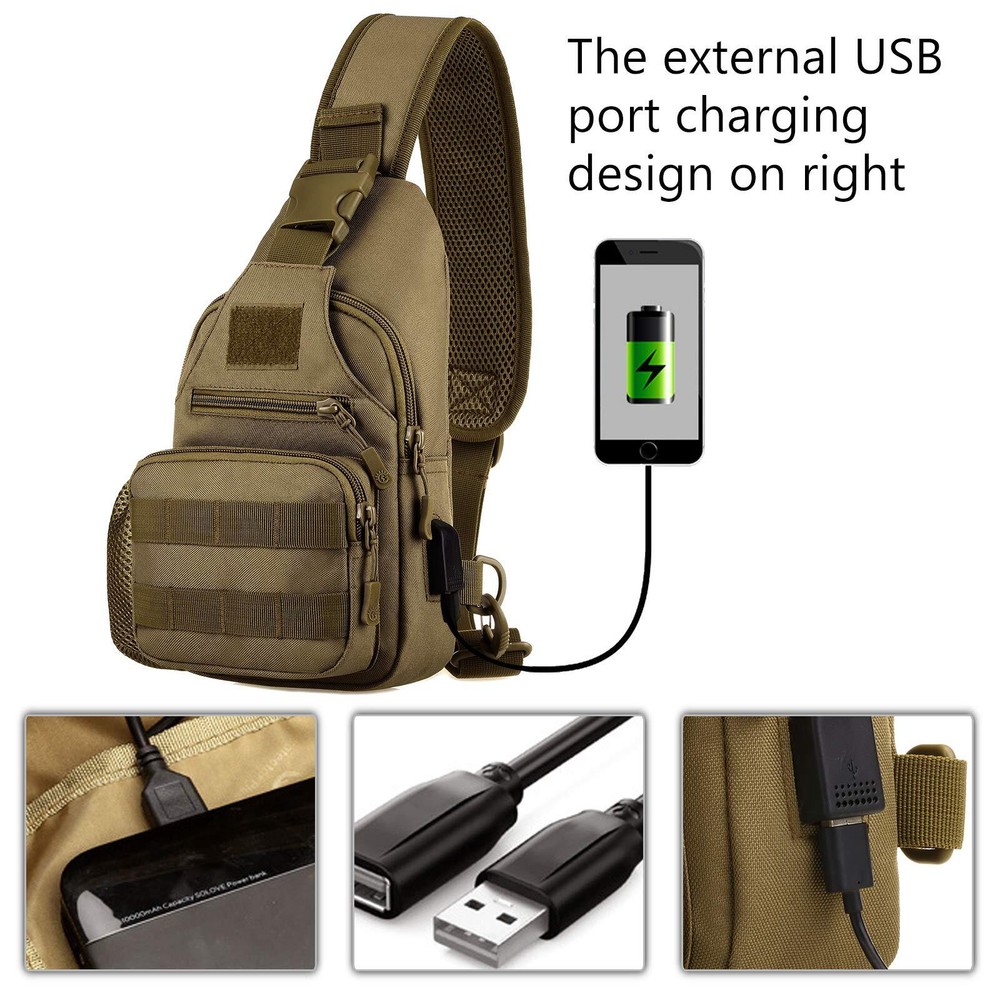 Tactical MOLLE Sling Bag with USB Charging Port Military Crossbody Pack