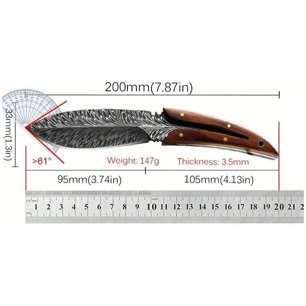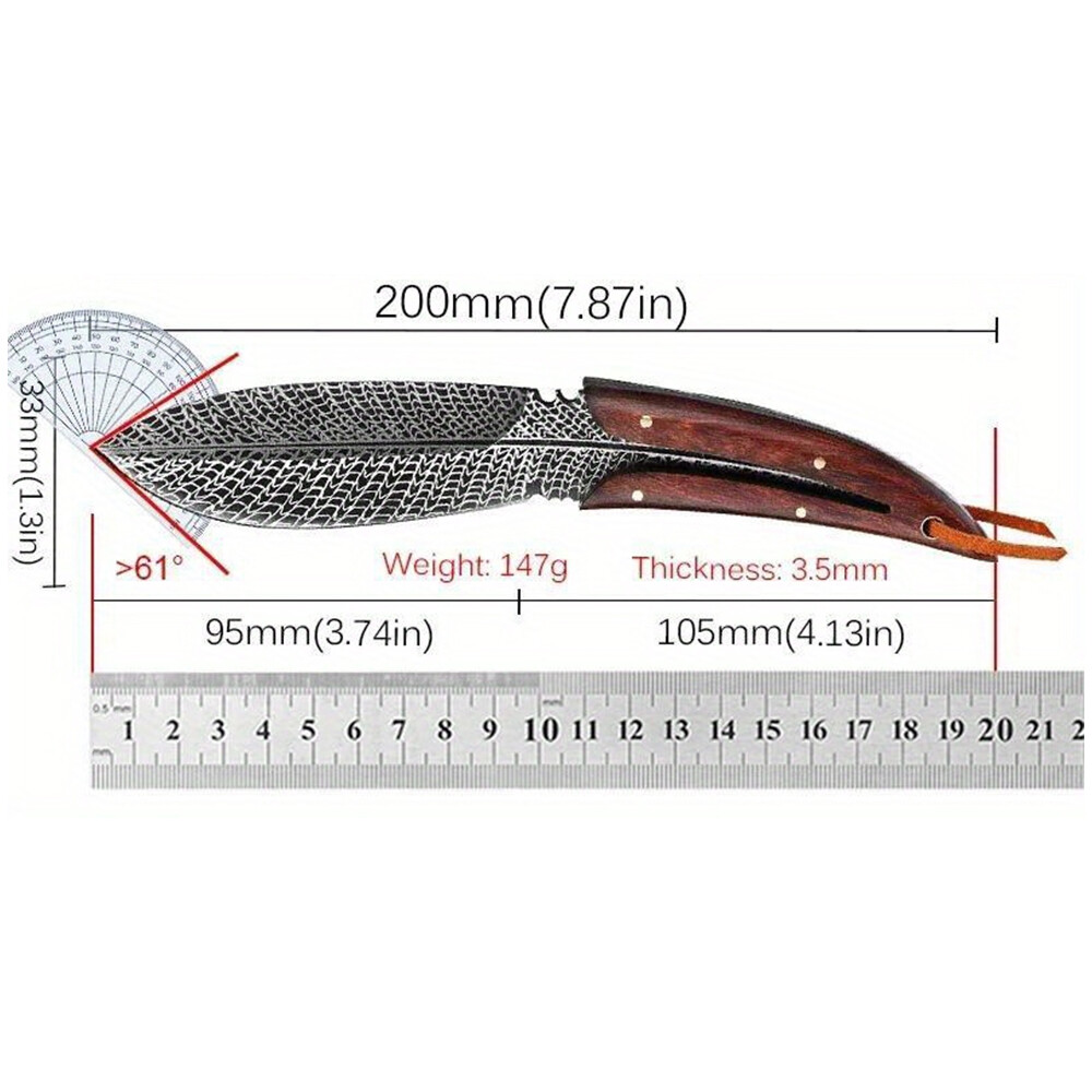 Specifications: Total length: 20cm Blade length: 95MM Width: 33mm Thickness: 3.5MM Technology: the surface is corroded with feathers. Weight 147G The package contains: 1 x Camping Knife 1 x Holster On Dec 16, 2024 at 01:01:38 PST, seller added the following information: On Dec 26, 2024 at 09:27:47 PST, seller added the following information: On May 13, 2025 at 02:35:32 PDT, seller added the following information: On Jul 10, 2025 at 17:48:01 PDT, seller added the following information: On Jul 15, 2025 at 17:46:28 PDT, seller added the following information: