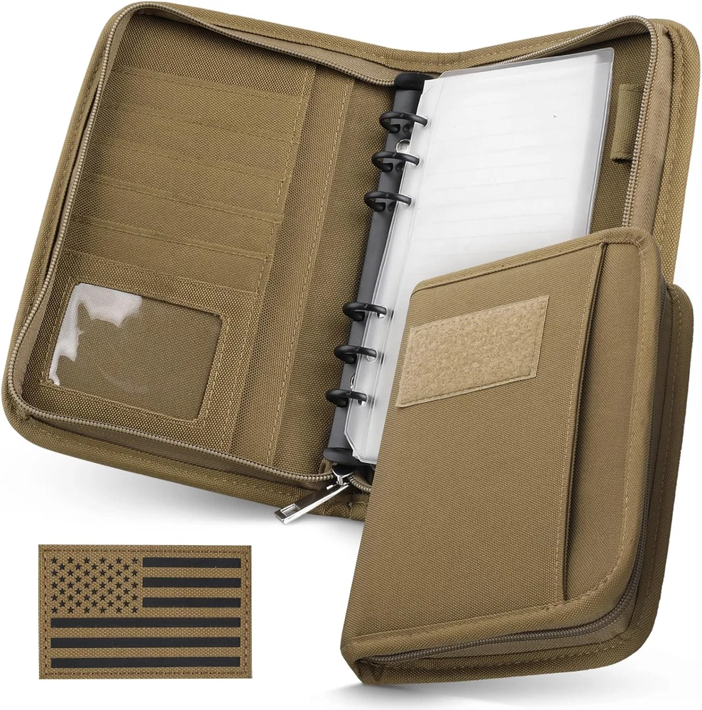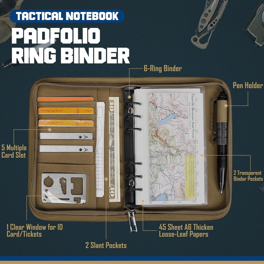 Tactical Notebook Padfolio Ring Binder - Refillable 6-Ring A6 Binder, Zip Hardco
