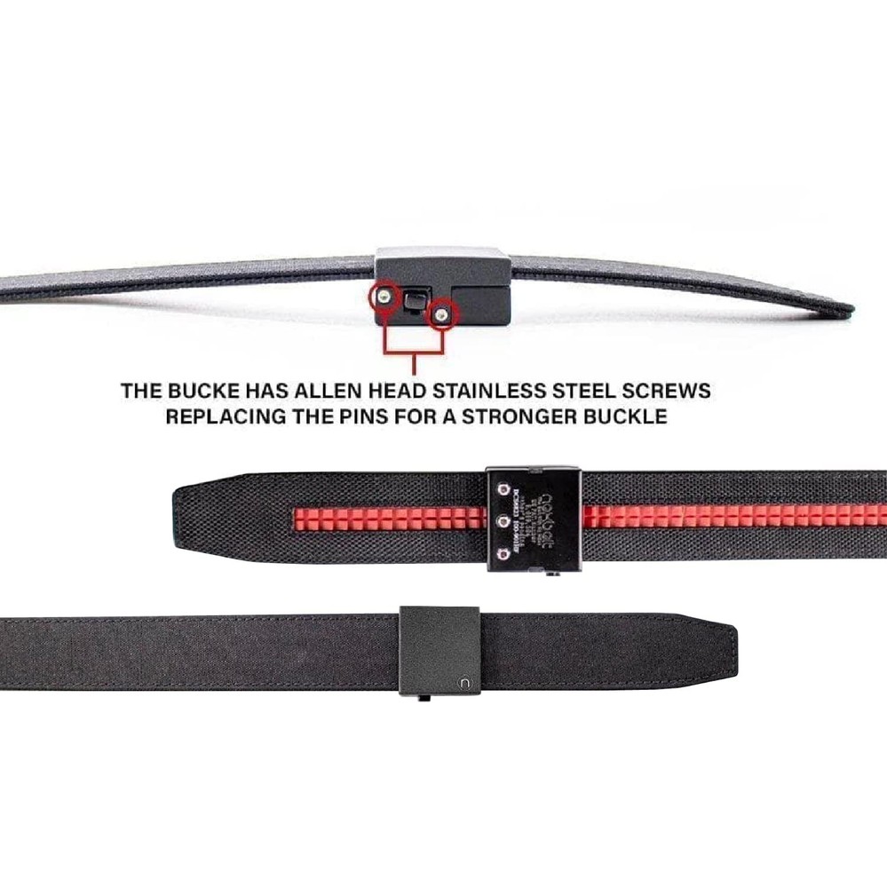 PreciseFit ratchet belt Sweat resistant backing Stiffness required for holstering your protection device if you have a CCW permit or just your everyday tools