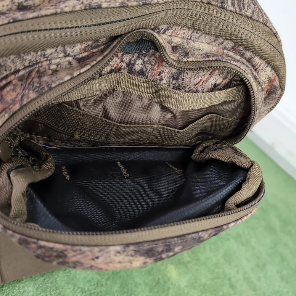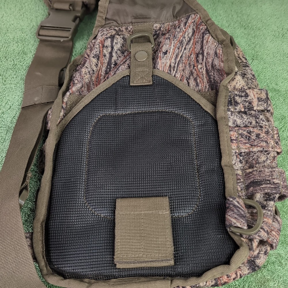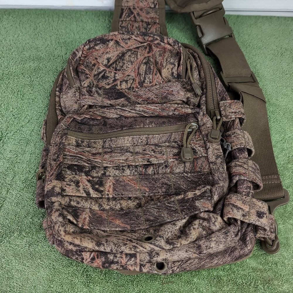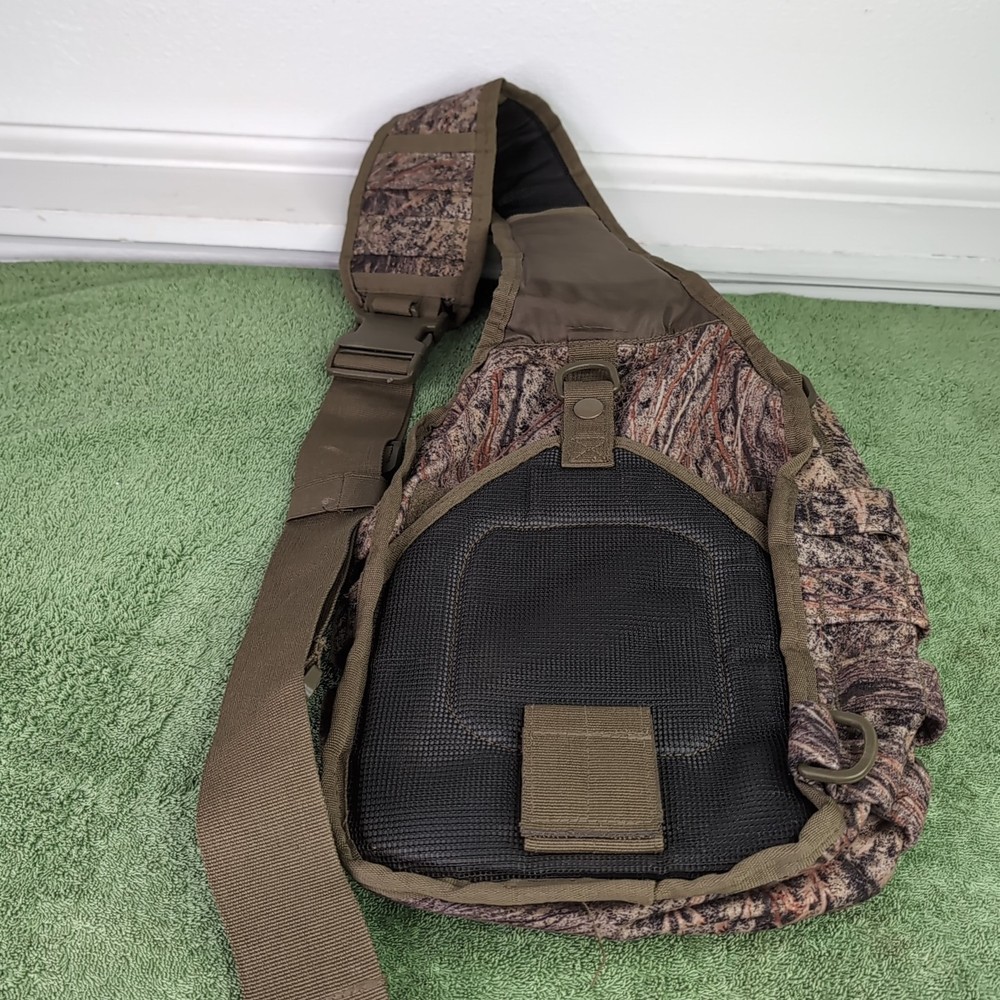 Red Rock outdoor gear tactical sling pack. Good used condition. This can be worn on your back or on the front. Comes with a cushioned adjustable strap. This has three main pockets with extra pockets inside. Mossy oak camouflage pattern.