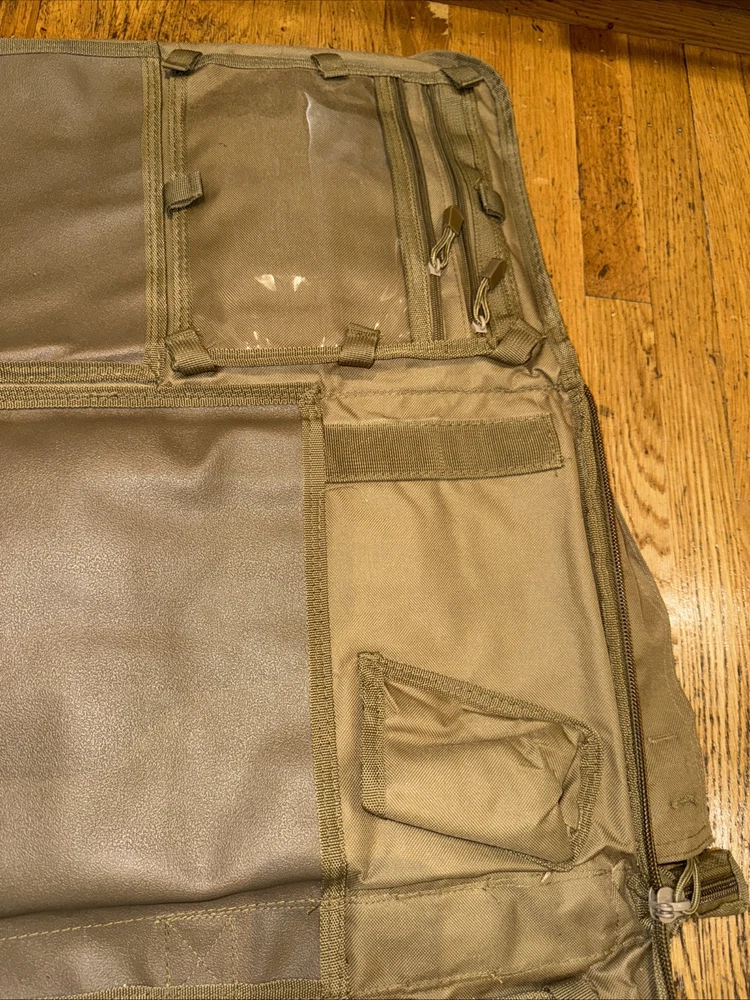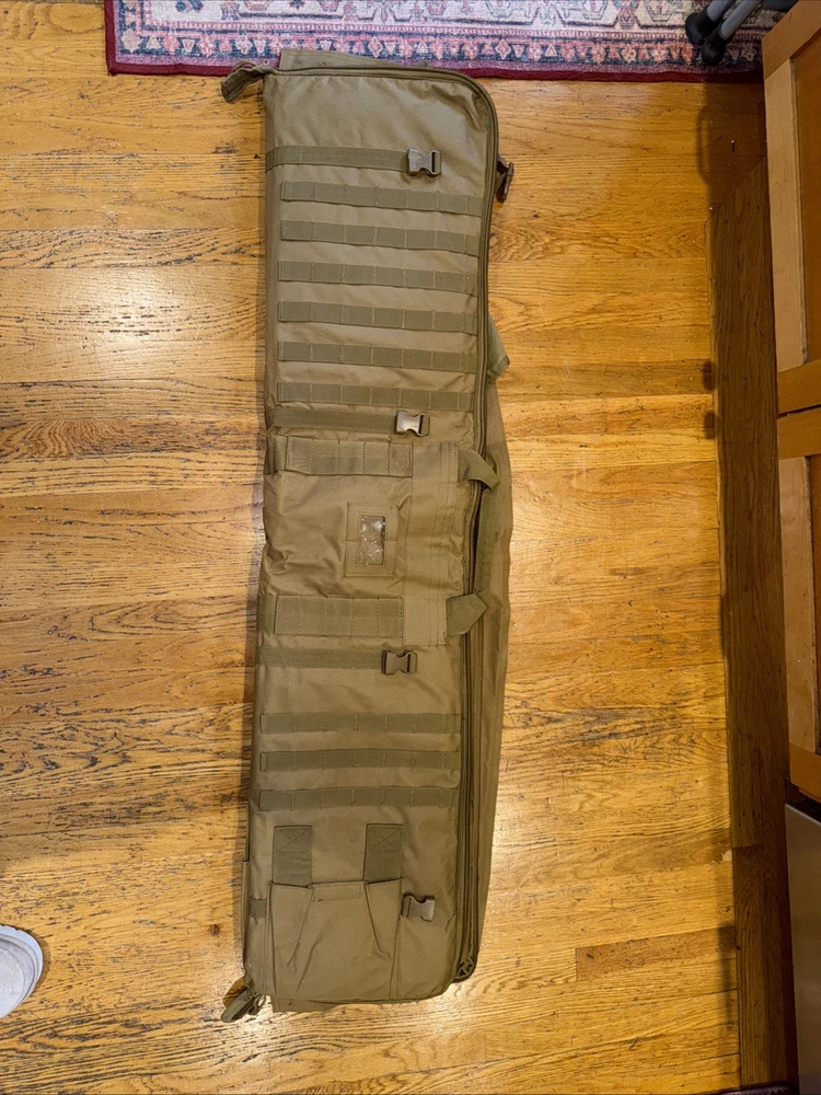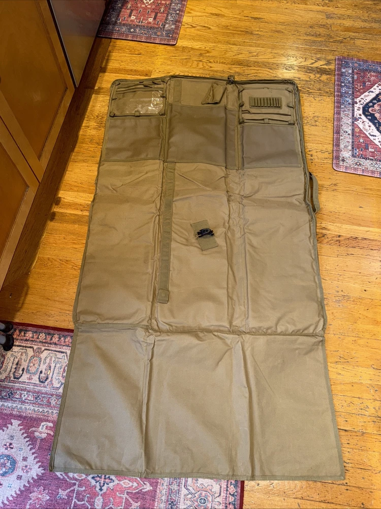 Rifle bag that doubles as a shooters mat. Meant for one full size rifle although I have been able to fit 2 Comes with detachable bags inside, ability to add lock around zipper, and other features (see photos) Paid $100 at my local gun shop for this but open to offers. Doesn’t really say a brand but It’s good quality I’ve had it for over a year and has only some slight wear from flopping around in the back of my truck when I go off road check photos, still in good condition. Any other questions just message me