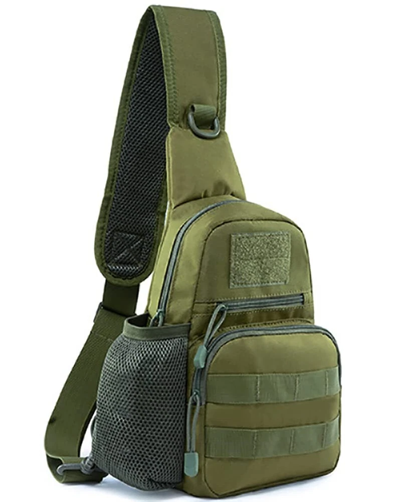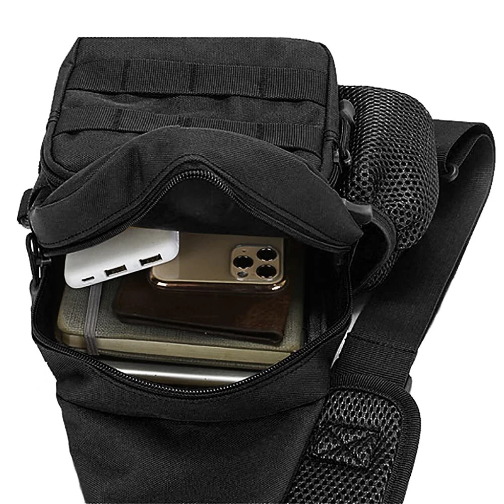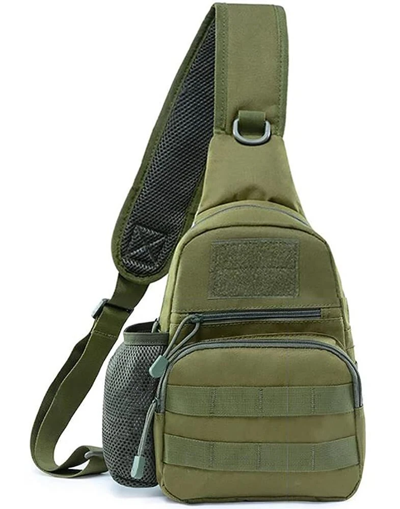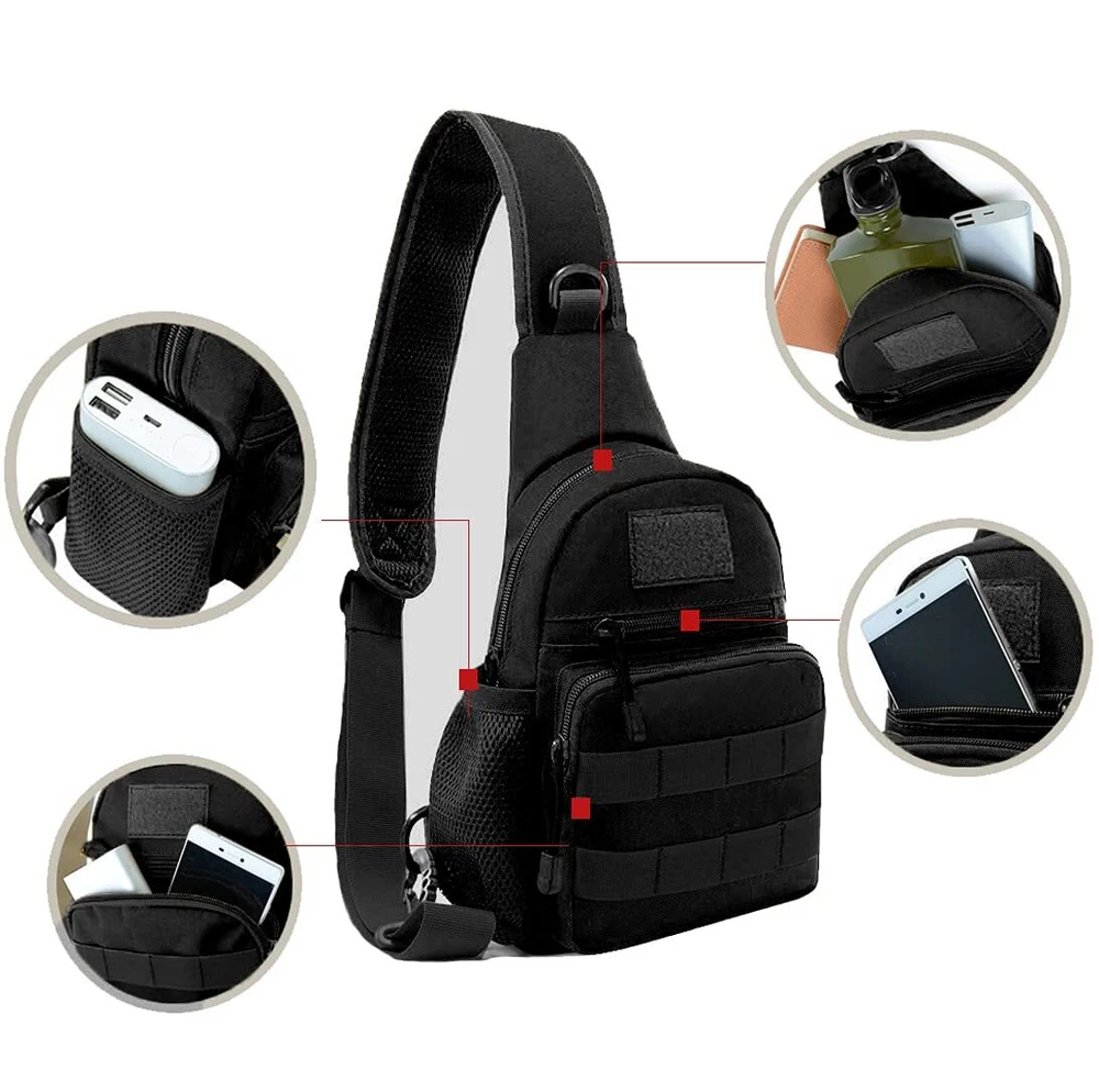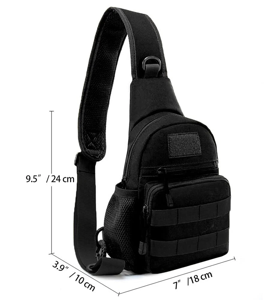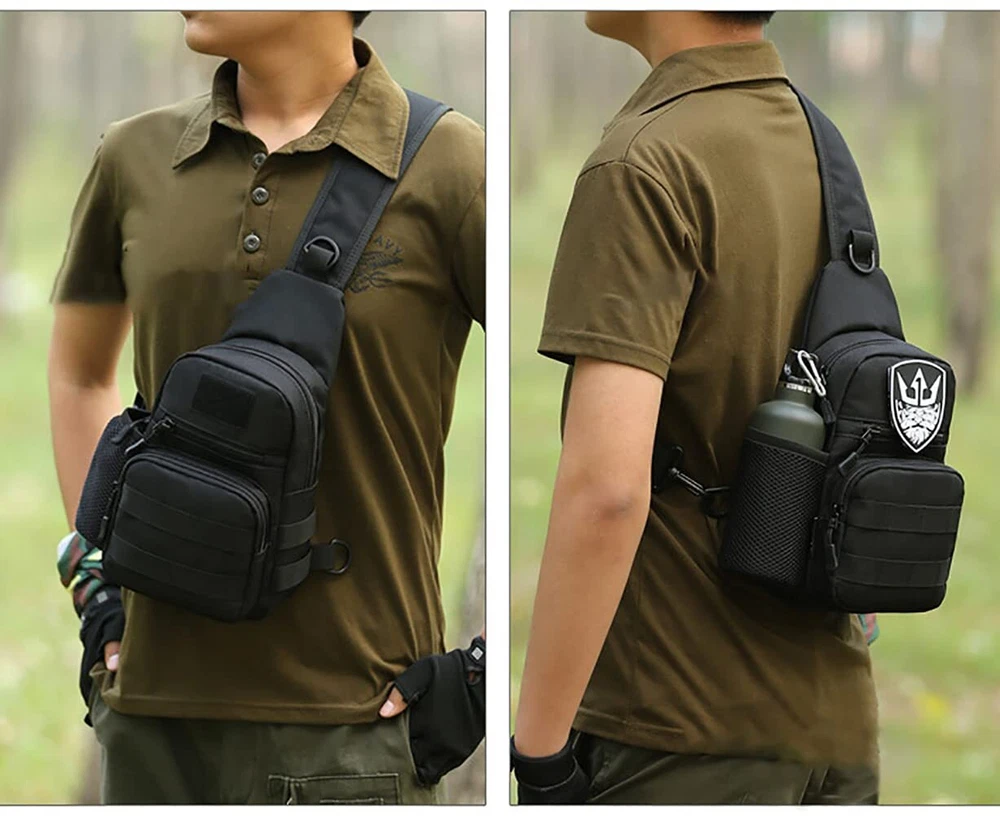 PREMIUM MATERIAL:tactical shoulder bag crossbody is made of high density 900D Oxford & Nylon fabric. Durable,water-resistantand wear-resisting, heavy duty zippers are well stiched, smooth to use. COMFORTABLE & LIGHTWEIGH: The adjustable widen shoulder strap designed with breathable mesh pads, breathable and comfortable, Removable straps can be used on both left and right shoulders, and can be rotated 360°, You can adjust freely according to your own situation.Thick mesh padded back area and shoulder straps will not squeeze you under heavy load. MULTIPLE POCKETS:This tactical rover sling pack with molle system has multiple pockets and compartments, two front zippered pocket, one main zippered pocket, water bottle holder on the side,enough for adding in your flashlight,cell phone, gloves, bottle and other EDC items.And, The hook&loop on the front of Molle Sling bag,you can mix and match your favorite patches at will. MOLLE SYSTEM: There are molle webbing system on front and sides. Can be combined with other packet,you can attaching extra pouches or gears as tactical backpack. MULTI PURPOSE:This small tactical sling range bag would be a great choise as a EDC sling pack,tactical versipack,chest bag,hand bag,pouch,first-aid kit. suitable for outdoor sports activities hiking,fishing,military,hunting,camping,traveling,cycling.